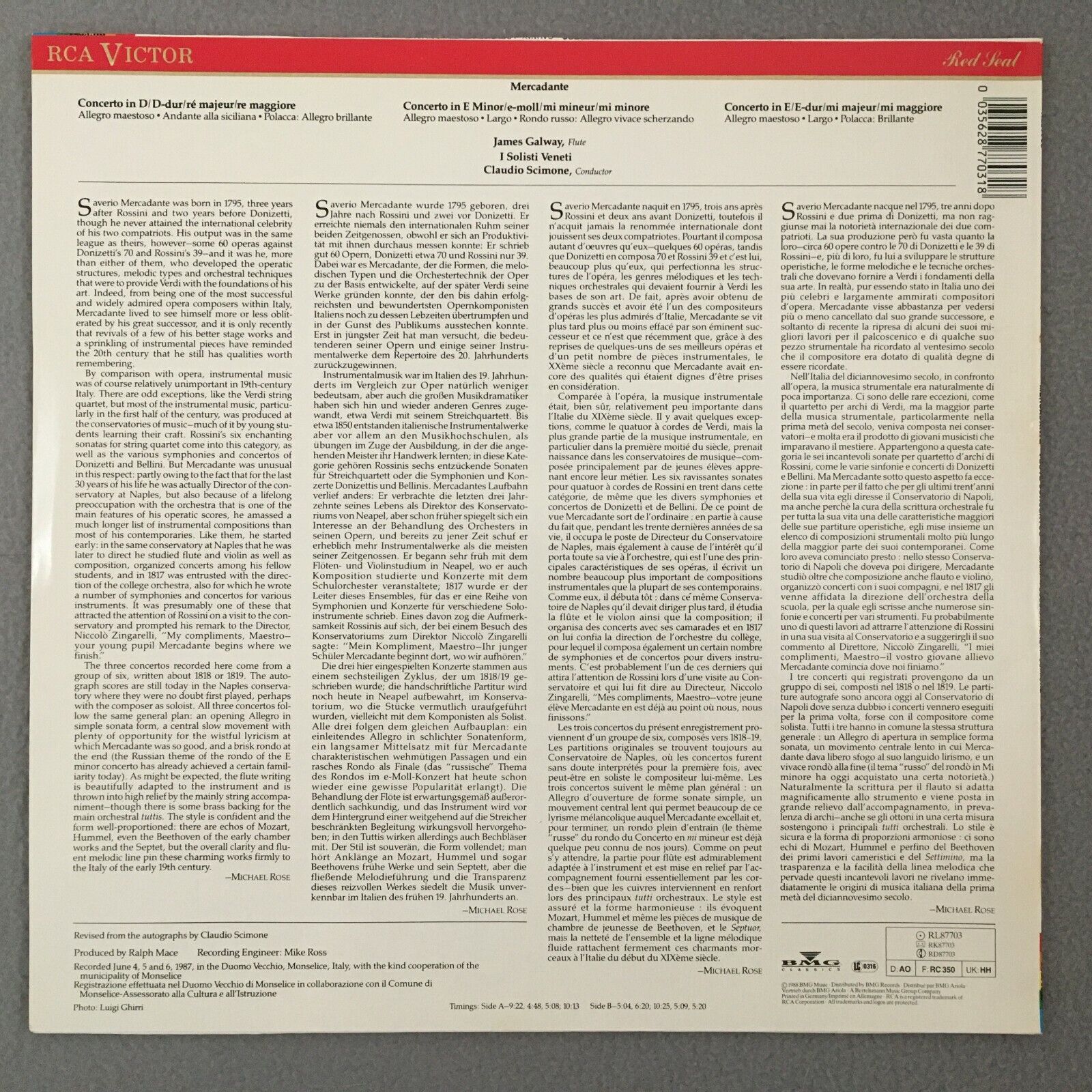 R058 Mercadante Flute Concertos Galway Scimone I Solisti Veneti RCA RL 87703 St