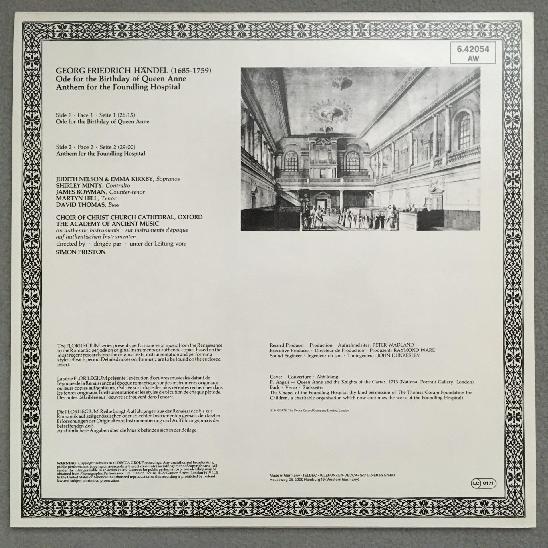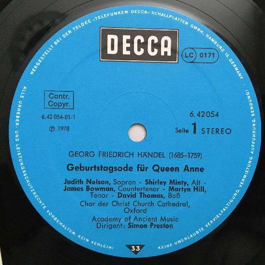 P789 Handel Ode for the Birthday of Queen Anne Preston DECCA 6.42054 AW Stereo