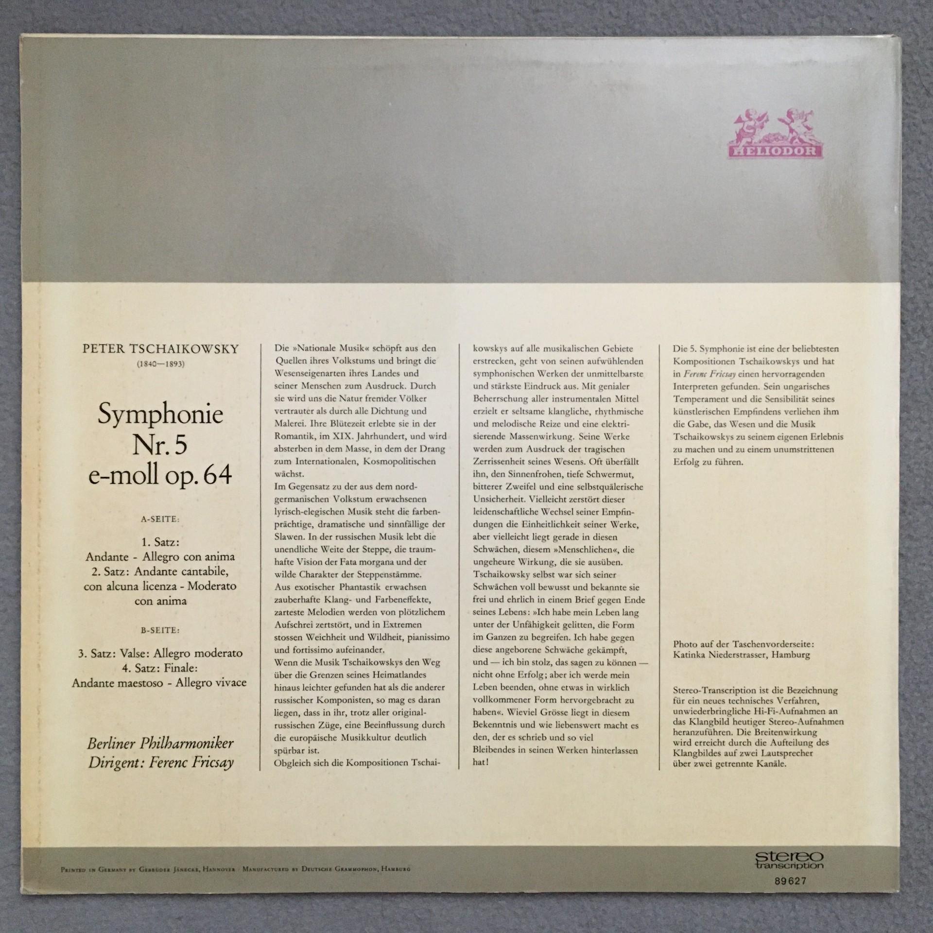 P795 Tchaikovsky Symphony No.5 Fricsay BPO Heliodor 89 627 Stereo