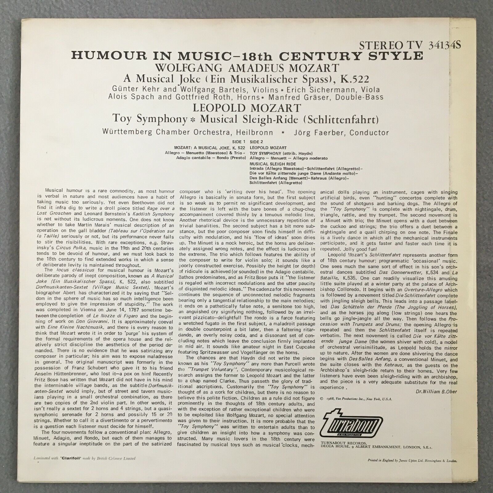 R049 Mozart A Musical Joke L. Mozart Toy Symphony Faerber Turnabout TV 34134S St