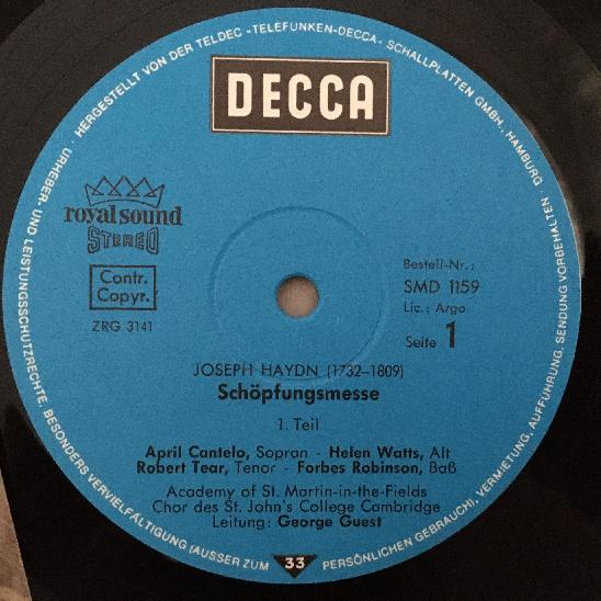 P804 Haydn Schöpfungsmesse Watts Tear Guest DECCA SMD 1159 Stereo