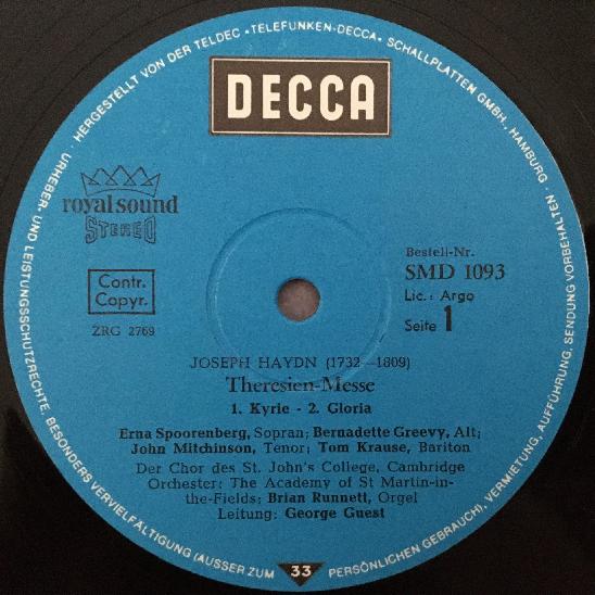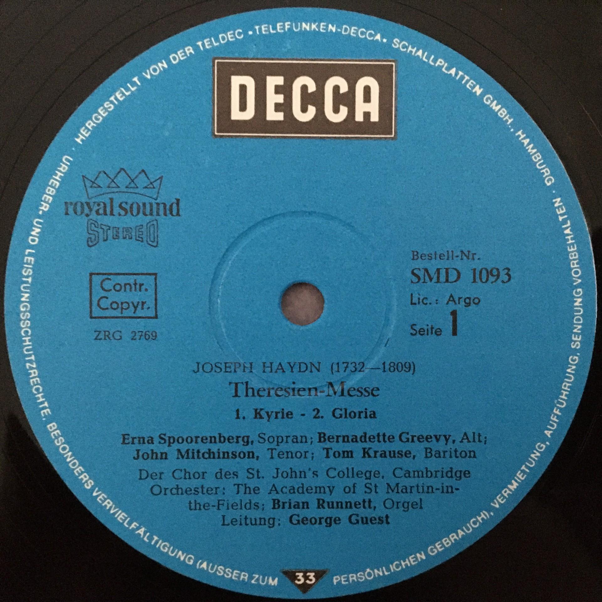 P805 Haydn Theresienmesse Spoorenberg Krause Guest DECCA SMD 1093 Stereo