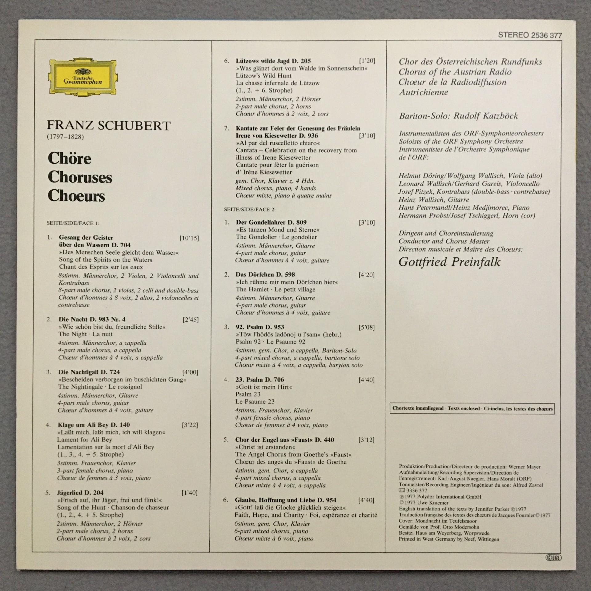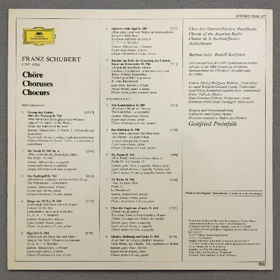 R671 Schubert Choruses Katzböck Preinfalk DGG 2536 377 Stereo