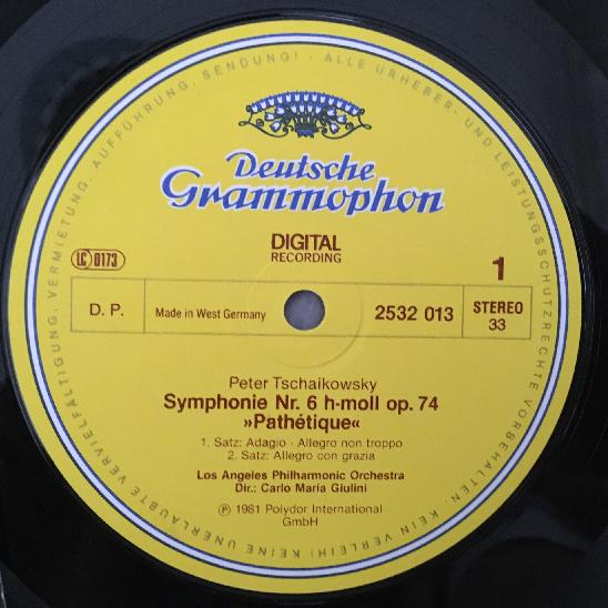 P824 Tchaikovsky Symphony No.6 Giulini DGG 2532 013 Digital Stereo