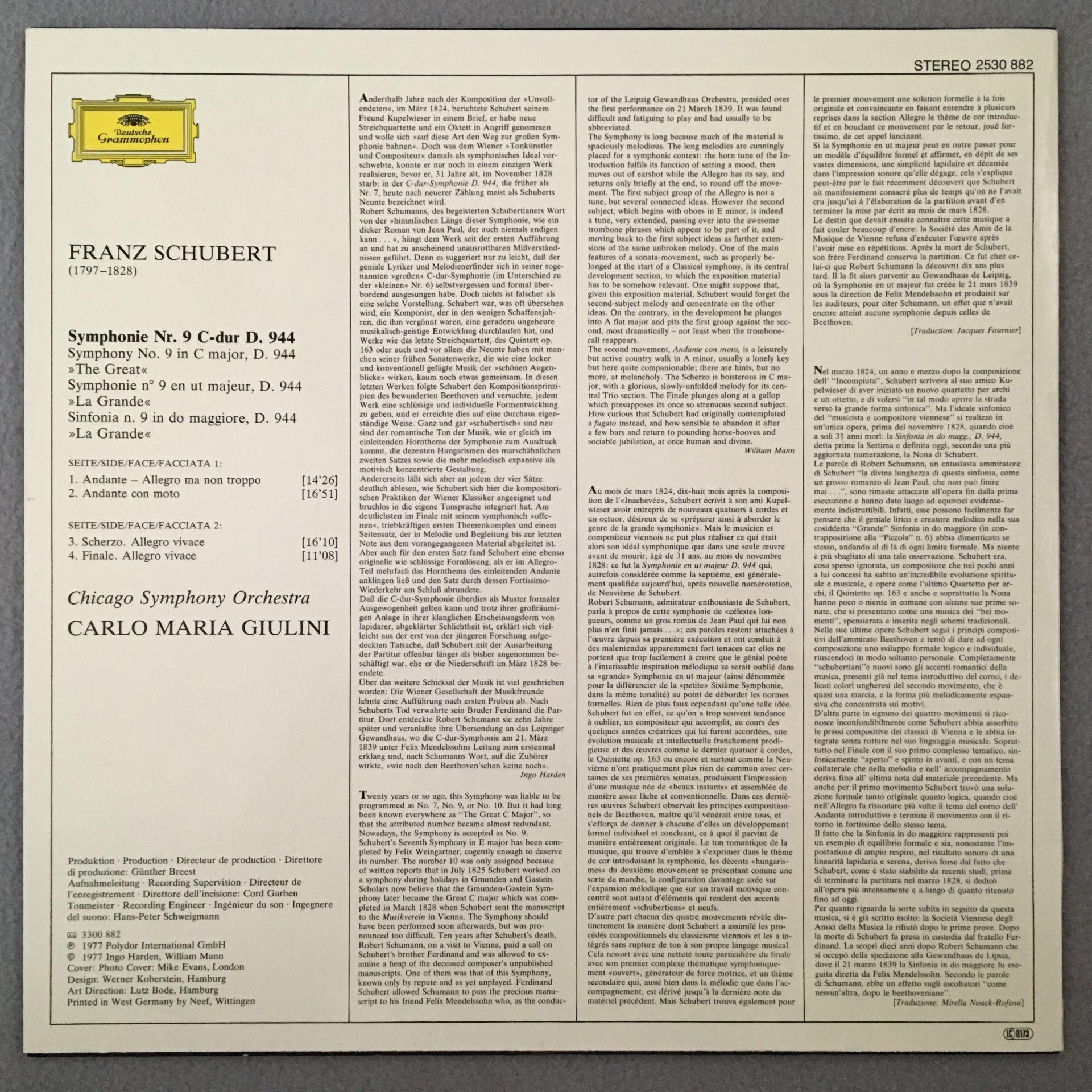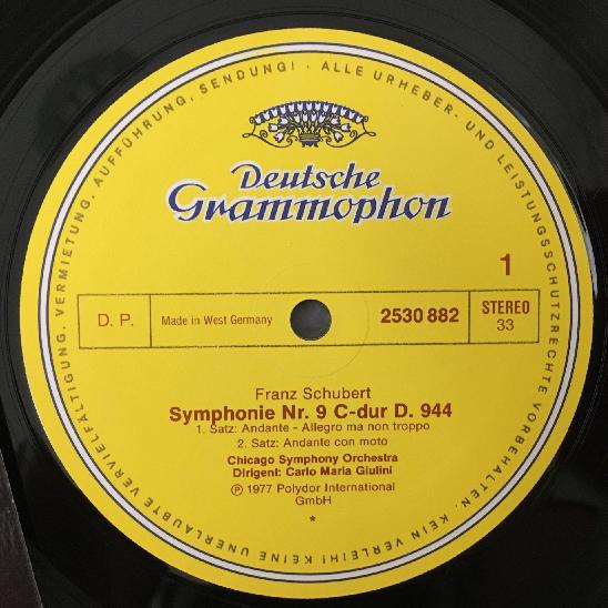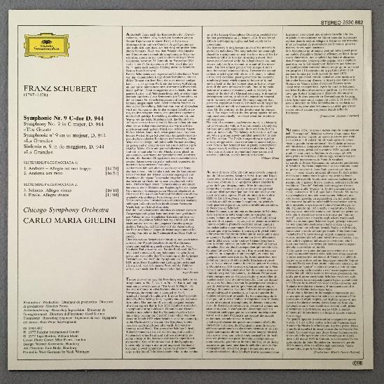 P836 Schubert Symphony No.9 Giulini DGG 2530 882 Stereo