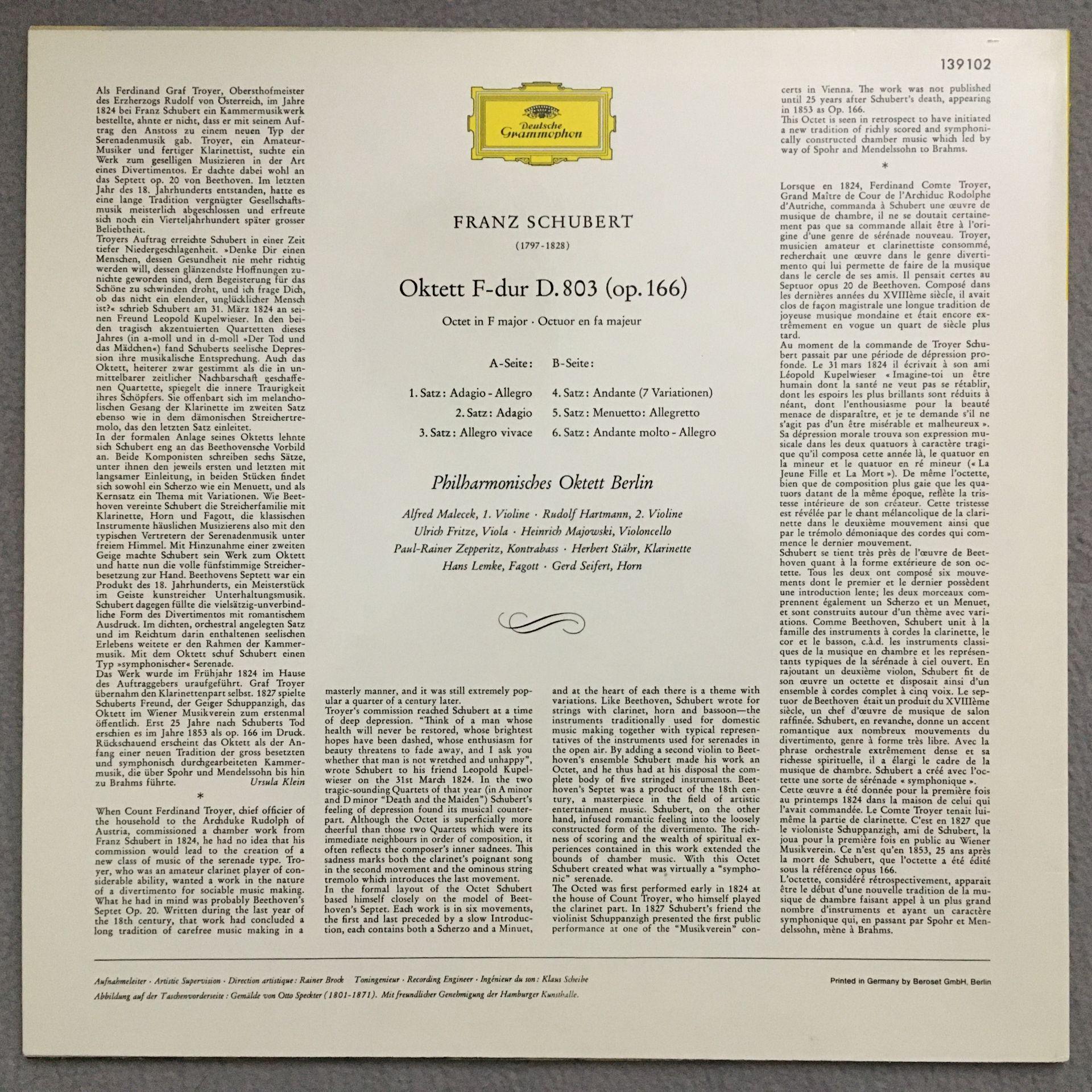 P842 Schubert Octet F-Dur D.803 Octet BPO DGG 139 102 Stereo