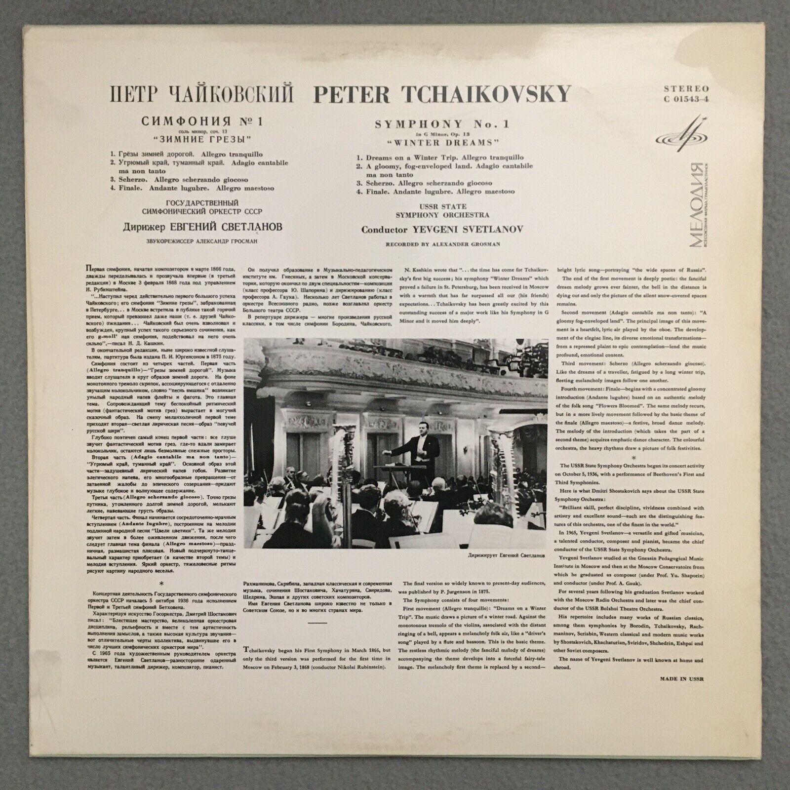 R044 Tchaikovsky Symphony No.1 Svetlanov Melodiya C 01543-4 Stereo