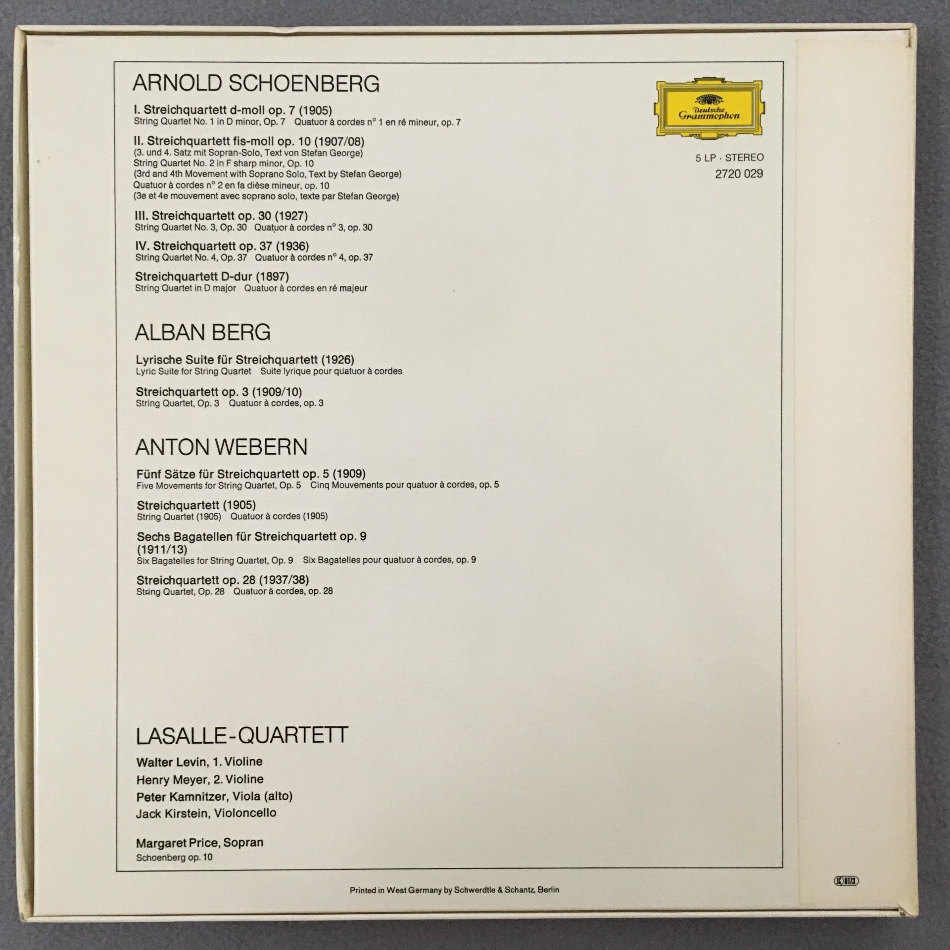 B550 New Vienna School String Quartets LaSalle Quartet 5LP DGG 2720 029 Stereo