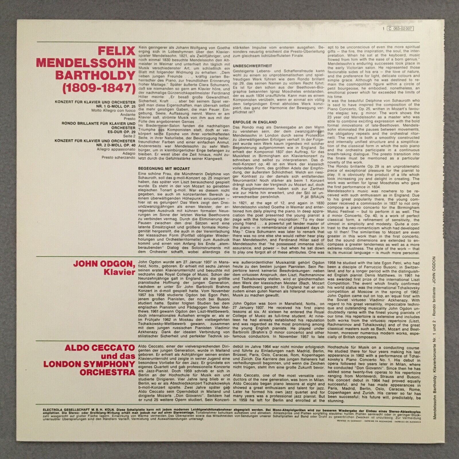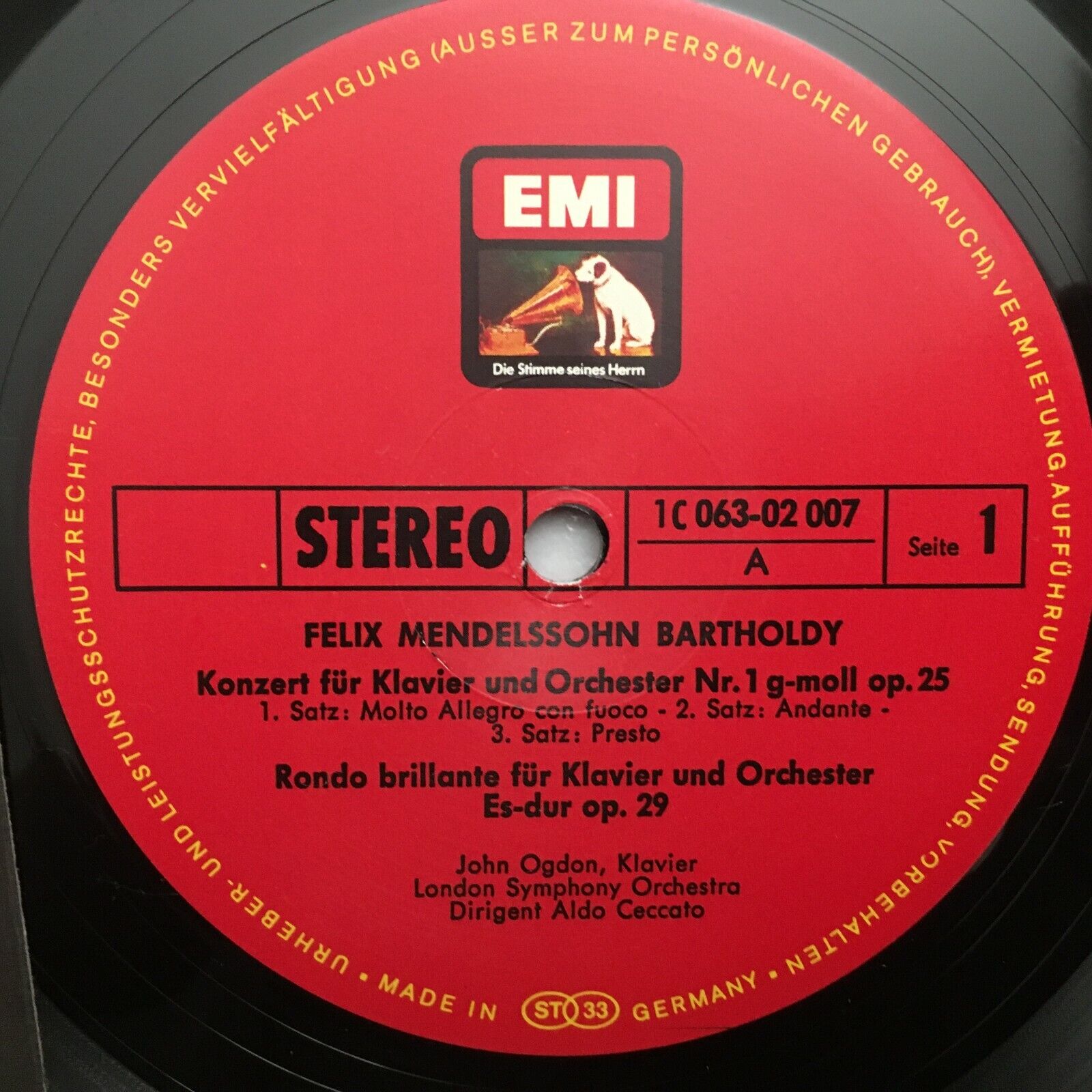 R037 Mendelssohn Piano Concertos Ogdon Ceccato EMI 1 C 063-02 007 Stereo