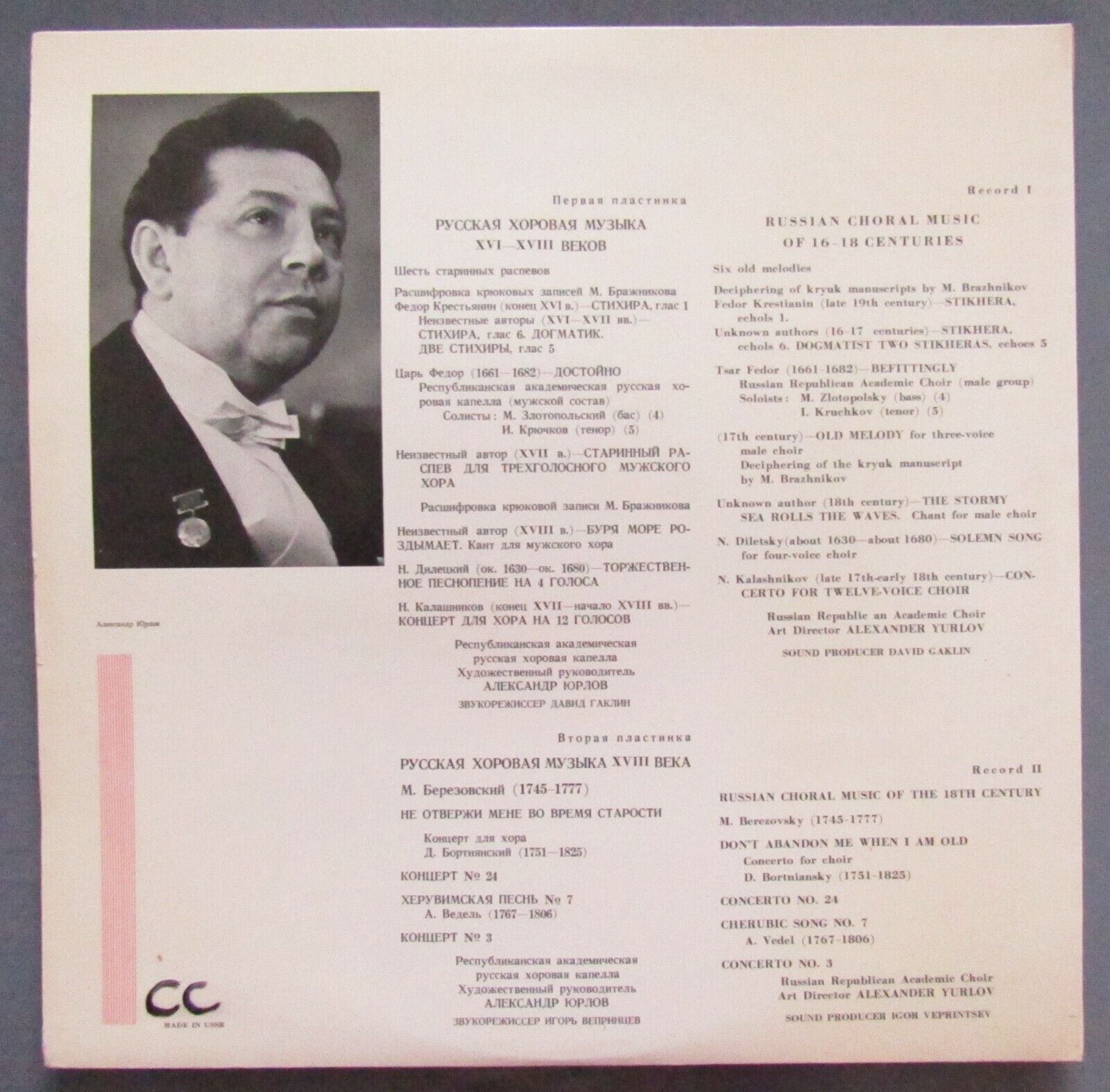 J258 Russian Choral Music 16-18 Centuries Yurlov 2LP Melodiya C 01645-8 Stereo