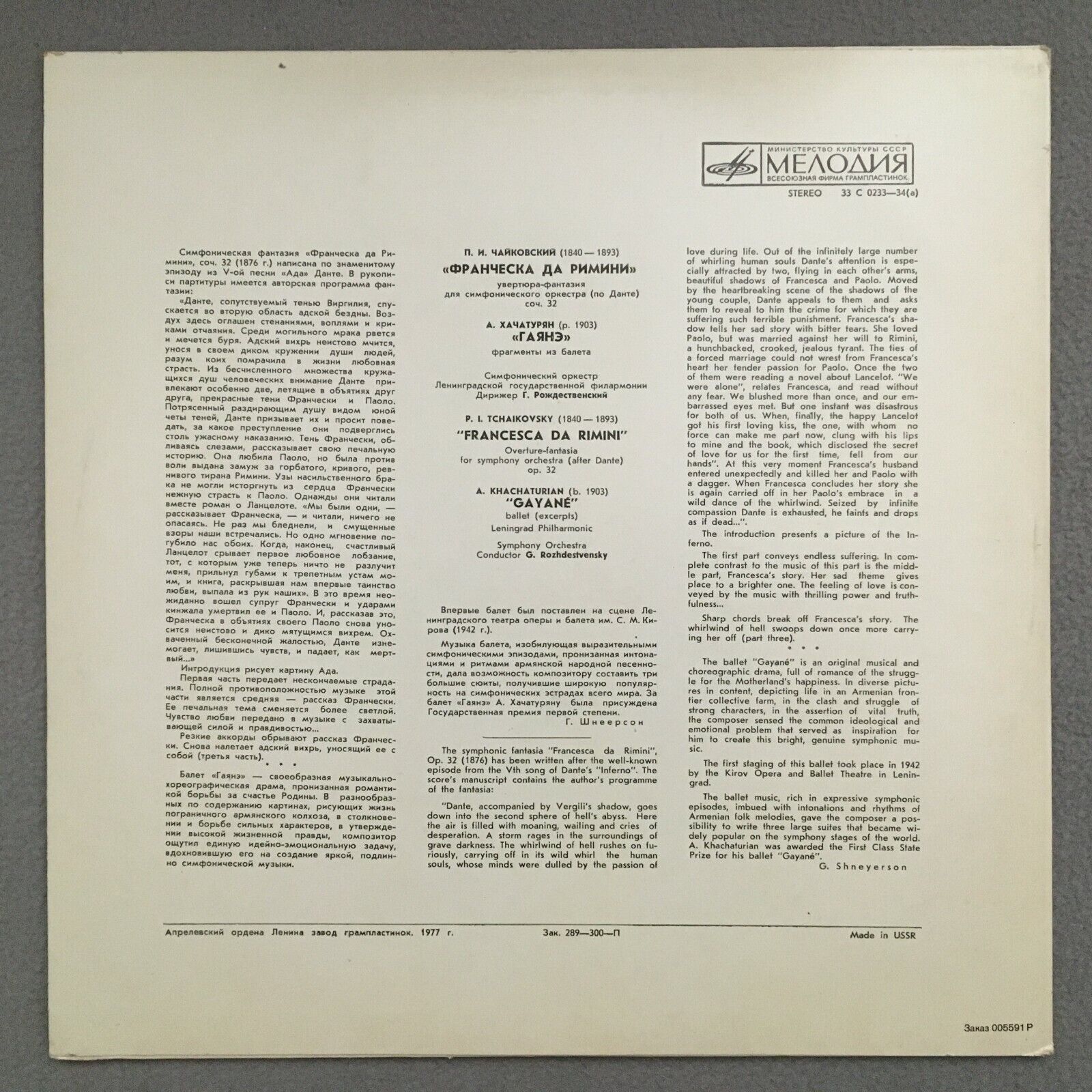 R028 Tchaikovsky Francesca da Rimini Rozhdestvensky Melodiya 33 C 0233-34 Stereo