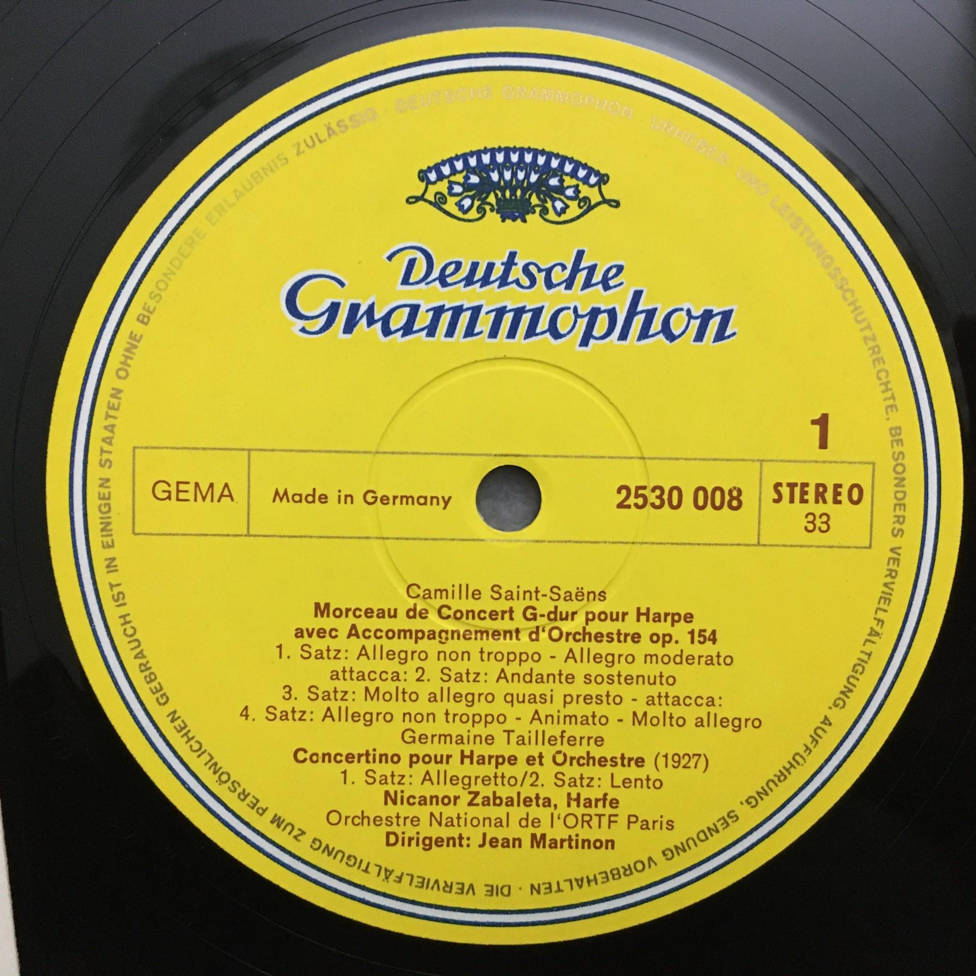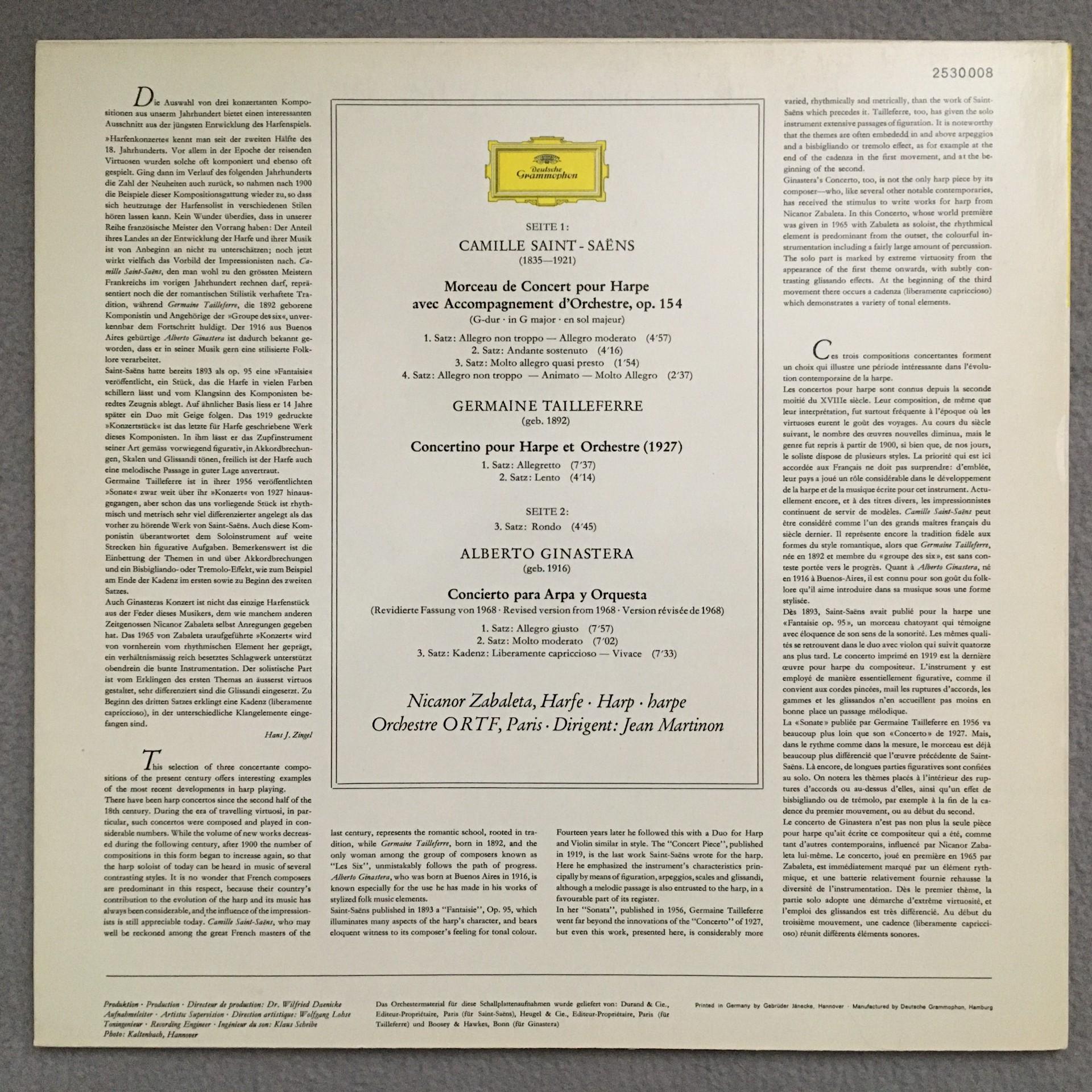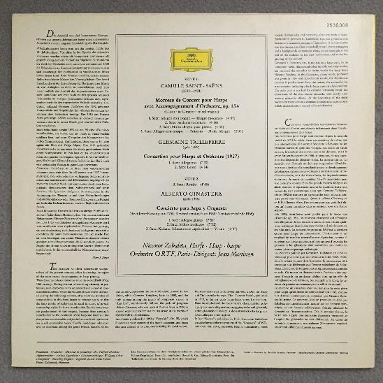 P860 Saint-Saens Tailleferre Harp Concertos Zabaleta Martinon DGG 2530 008 Ster