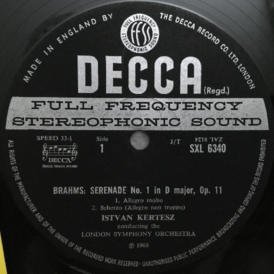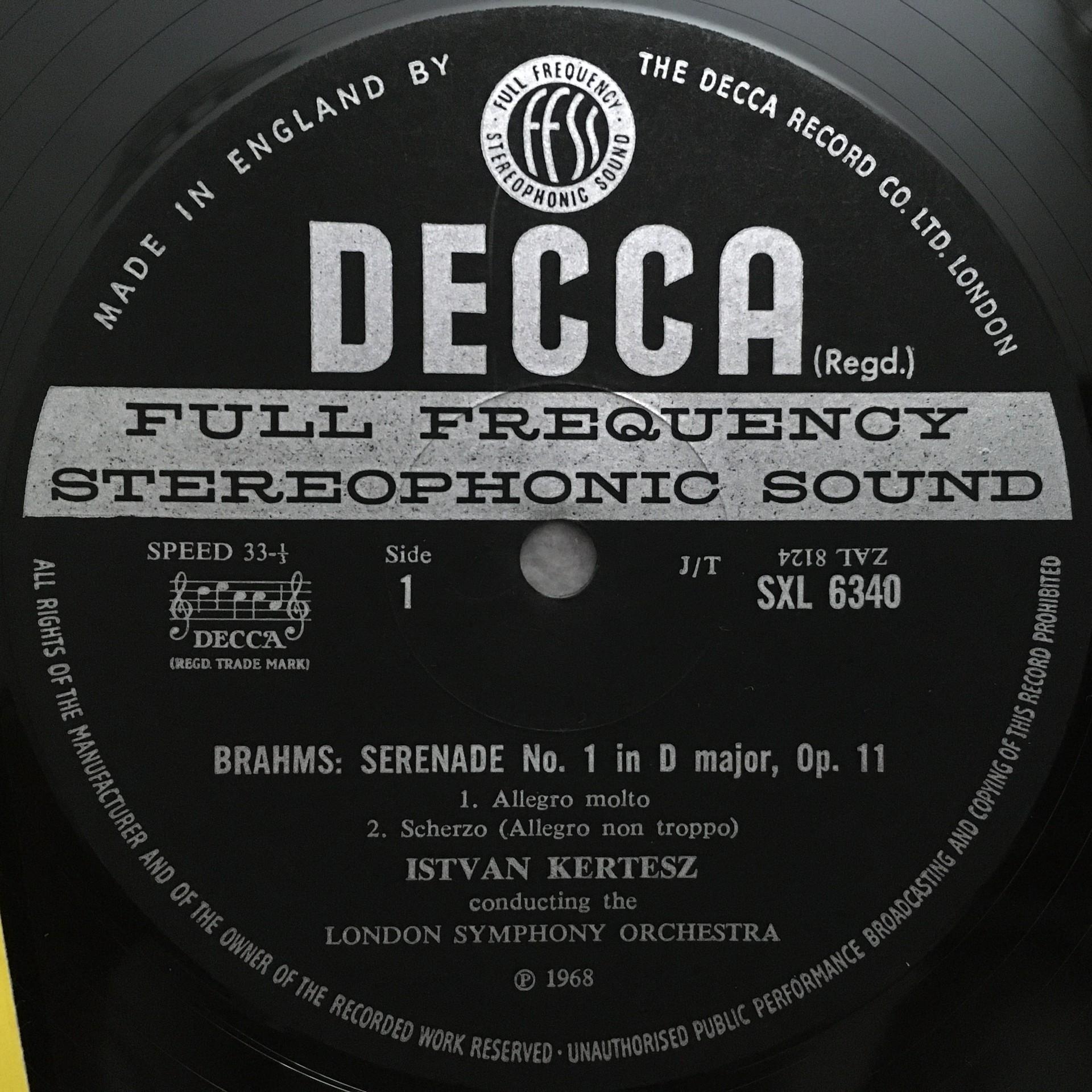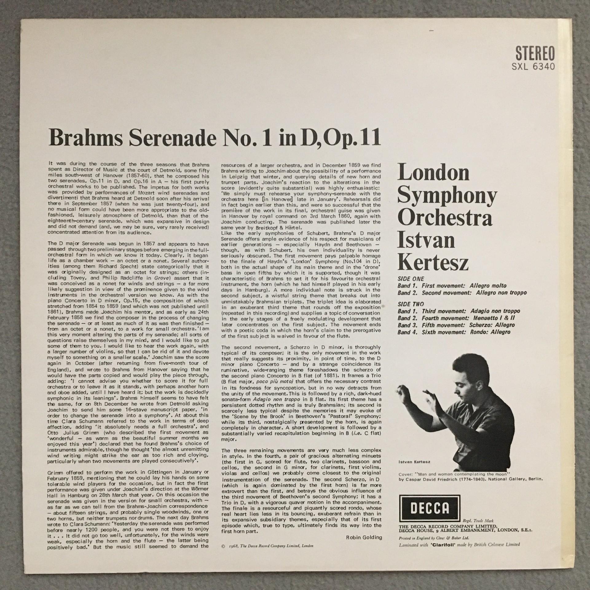 P864 Brahms Serenade No.1 Kertesz DECCA SXL 6340 Stereo WB