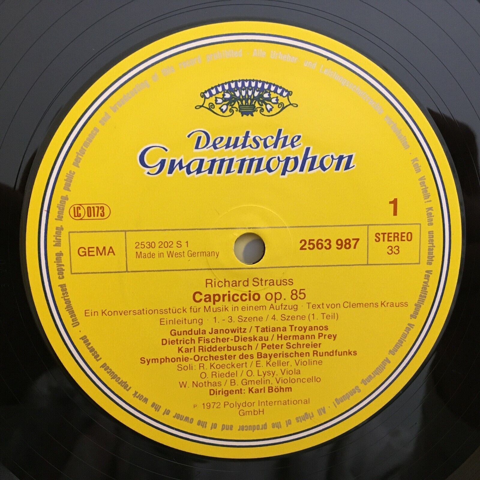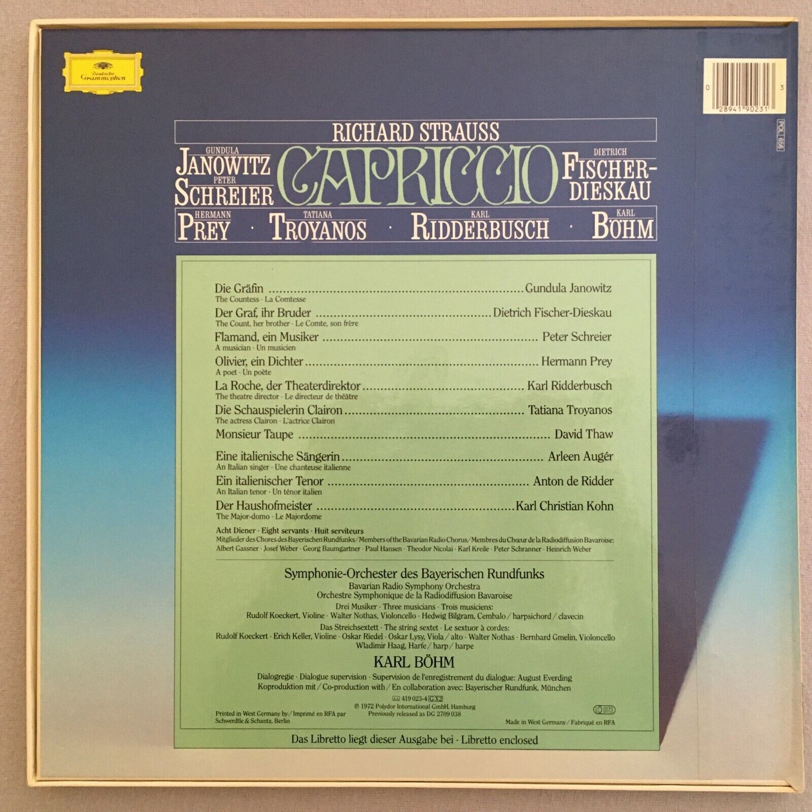 G367 R. Strauss Capriccio Janowitz Fischer-Dieskau Bohm 3LP DGG 419 023-1 Stereo