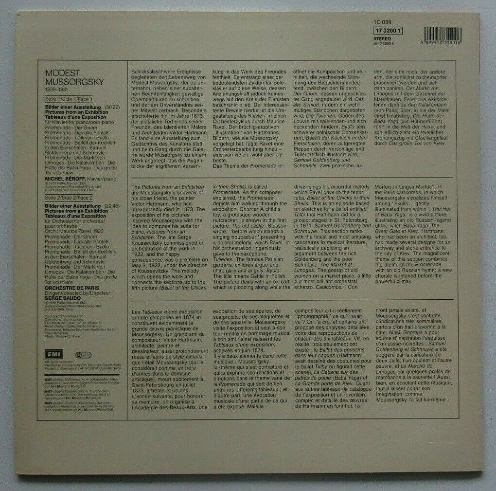 J256 Mussorgsky Pictures from an Exhibition Beroff Baudo EMI 1C 039 17 3200 1 St
