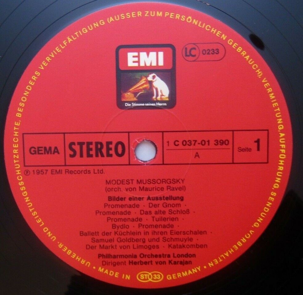 J249 Mussorgsky Pictures at a Exhibitions Karajan EMI 1C 037-01 390 Stereo