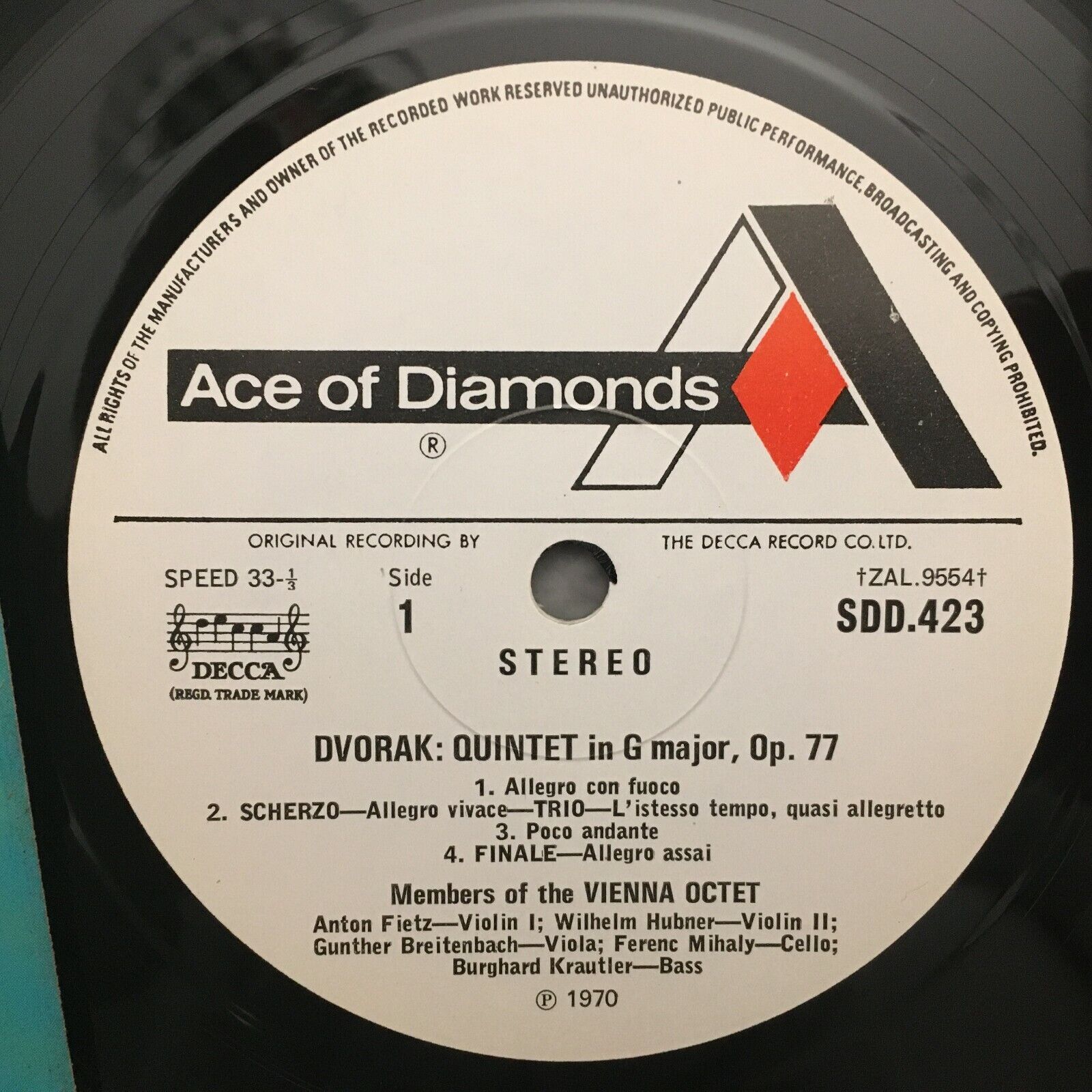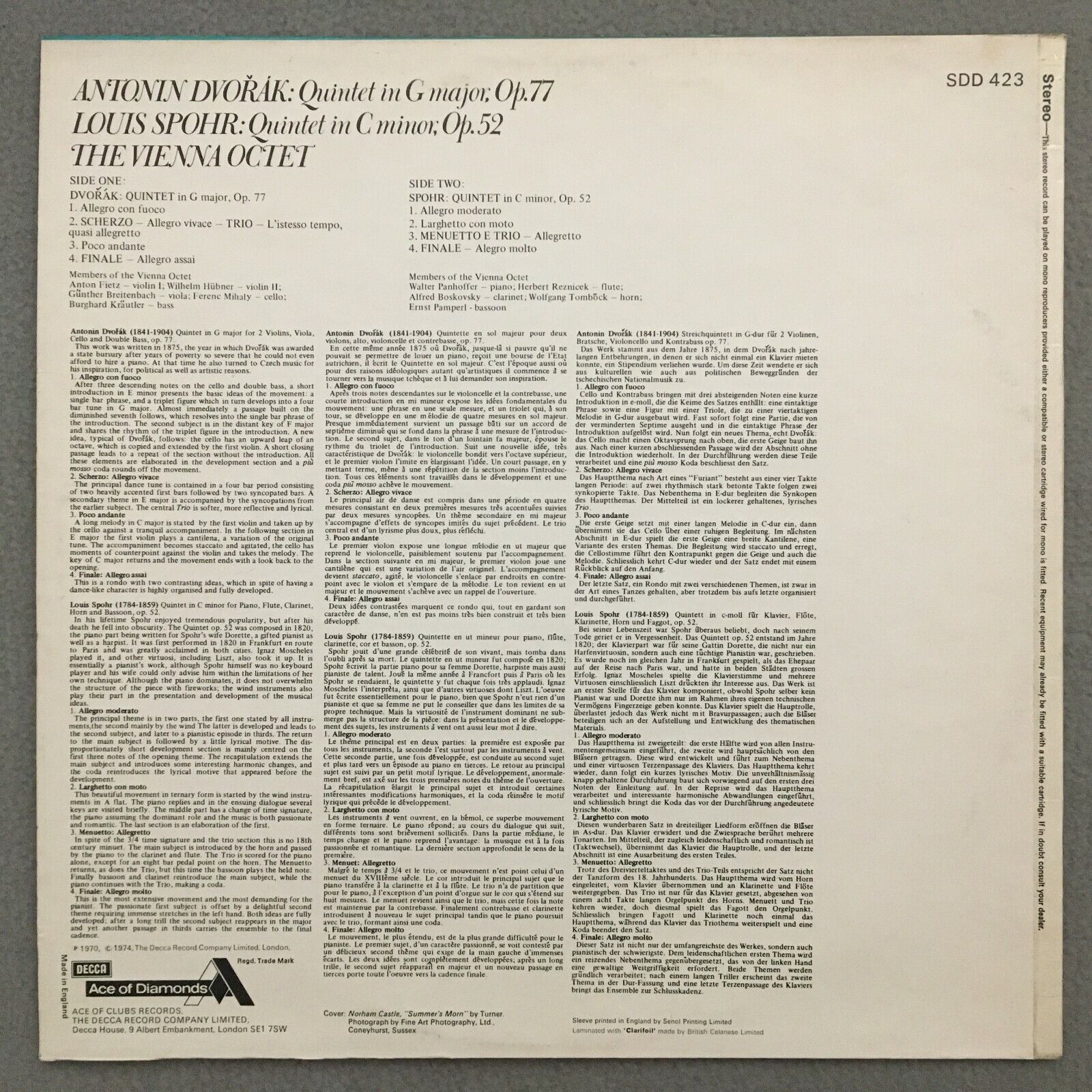 R016 Dvorak Spohr Quintets Members of Vienna Octet Ace of Diamonds SDD 423 St