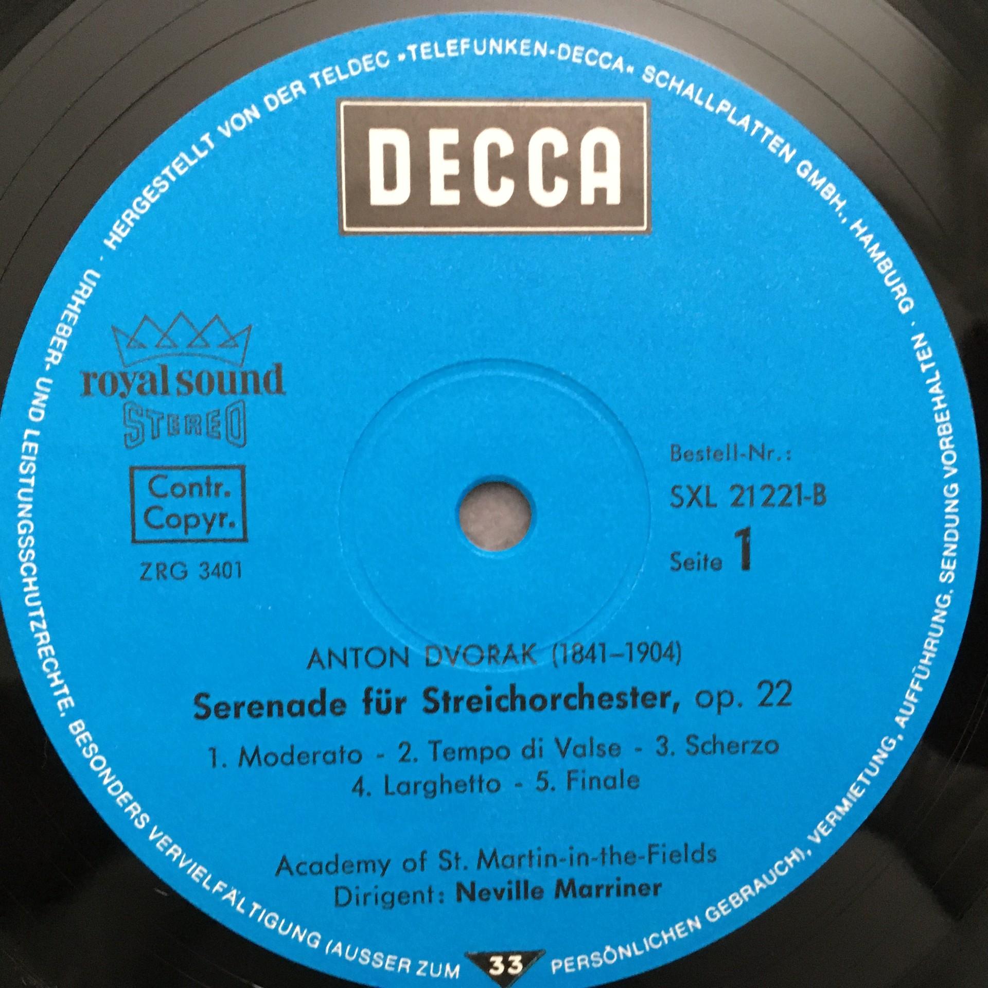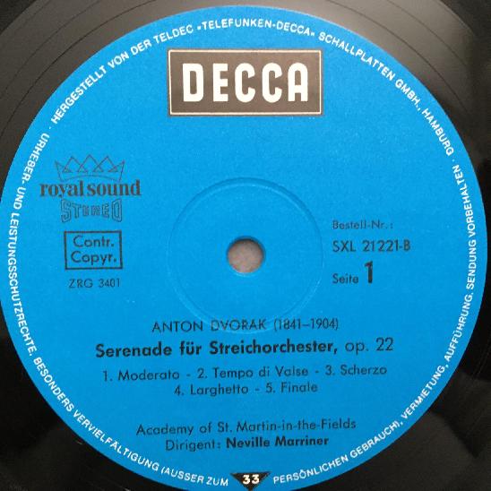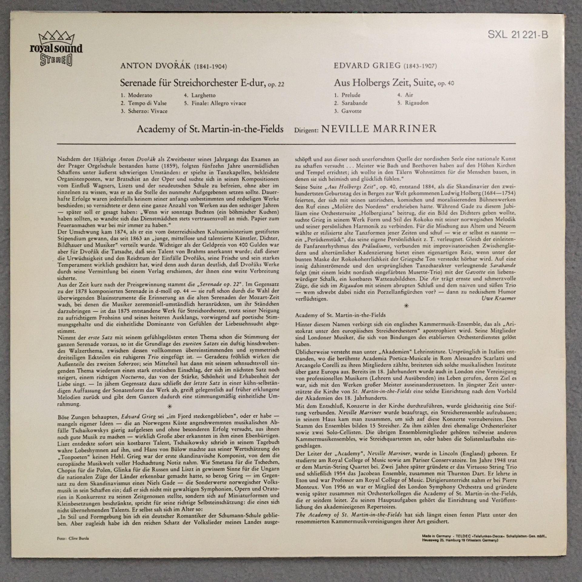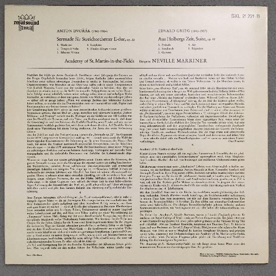 P884 Dvorak String Serenade Grieg Suite Marriner DECCA SXL 21 221-B Stereo