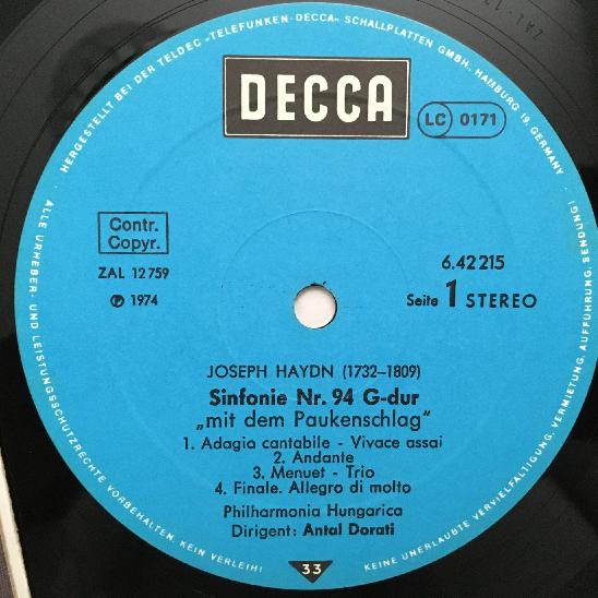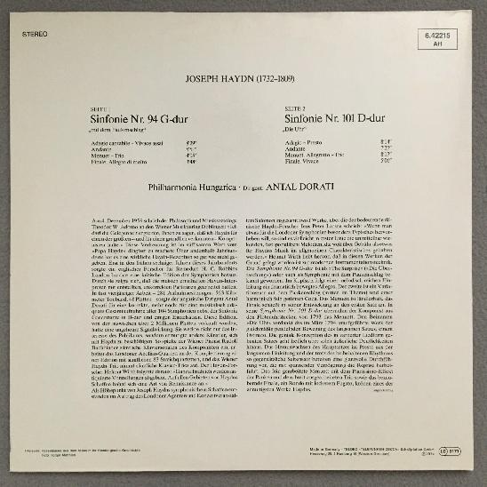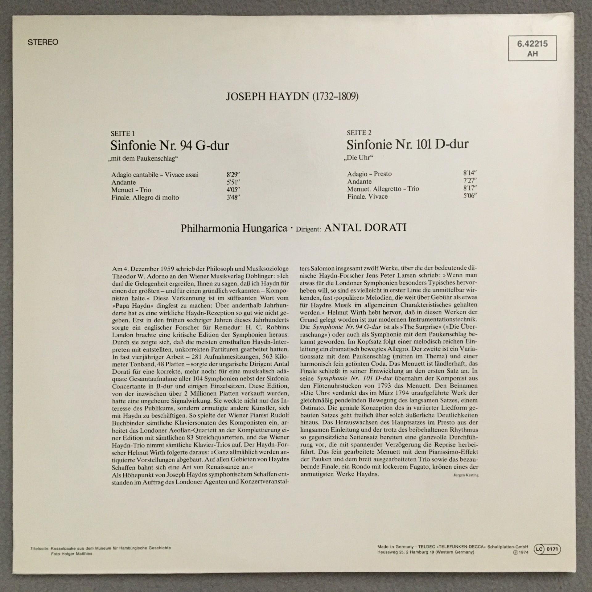 P886 Haydn Symphonies No.94 & No.101 Dorati DECCA 6.42215 AH Stereo