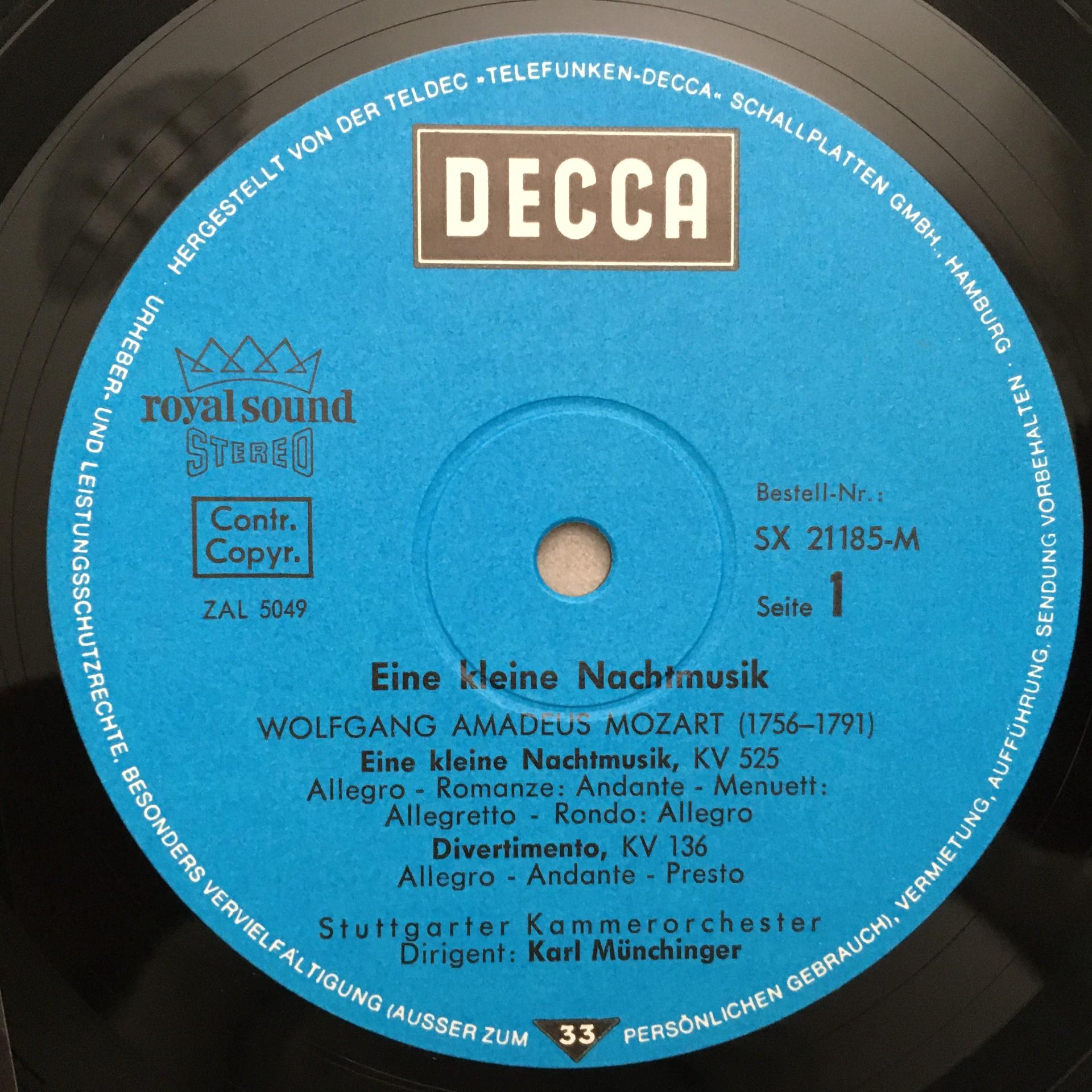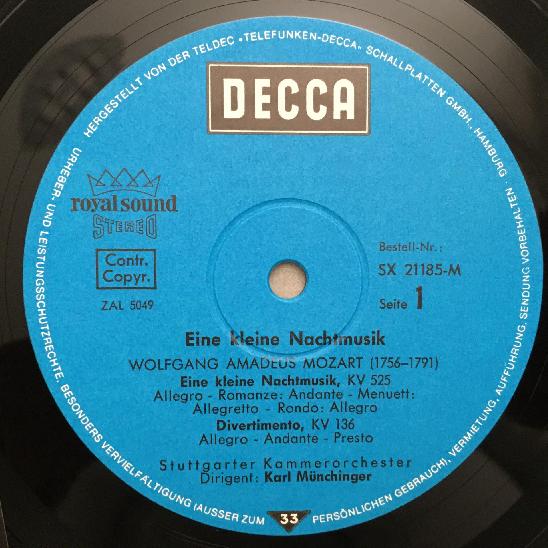 P888 Mozart Little Night Music Munchinger SX 21 185-M Stereo