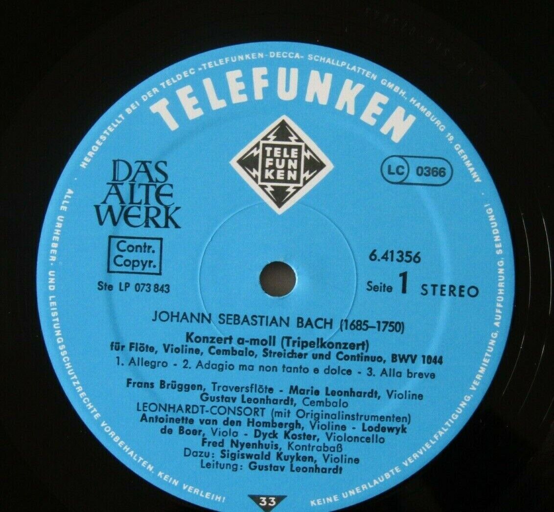 J228 Bach Triple Concerto C.P.E. Bach Sonata Leonhardt Telefunken 6.41356 Stereo