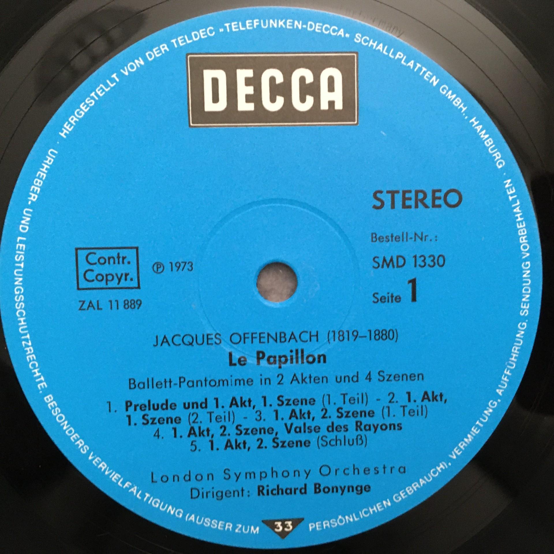 P891 Offenbach Le Papillon Bonynge DECCA SMD 1330 Stereo