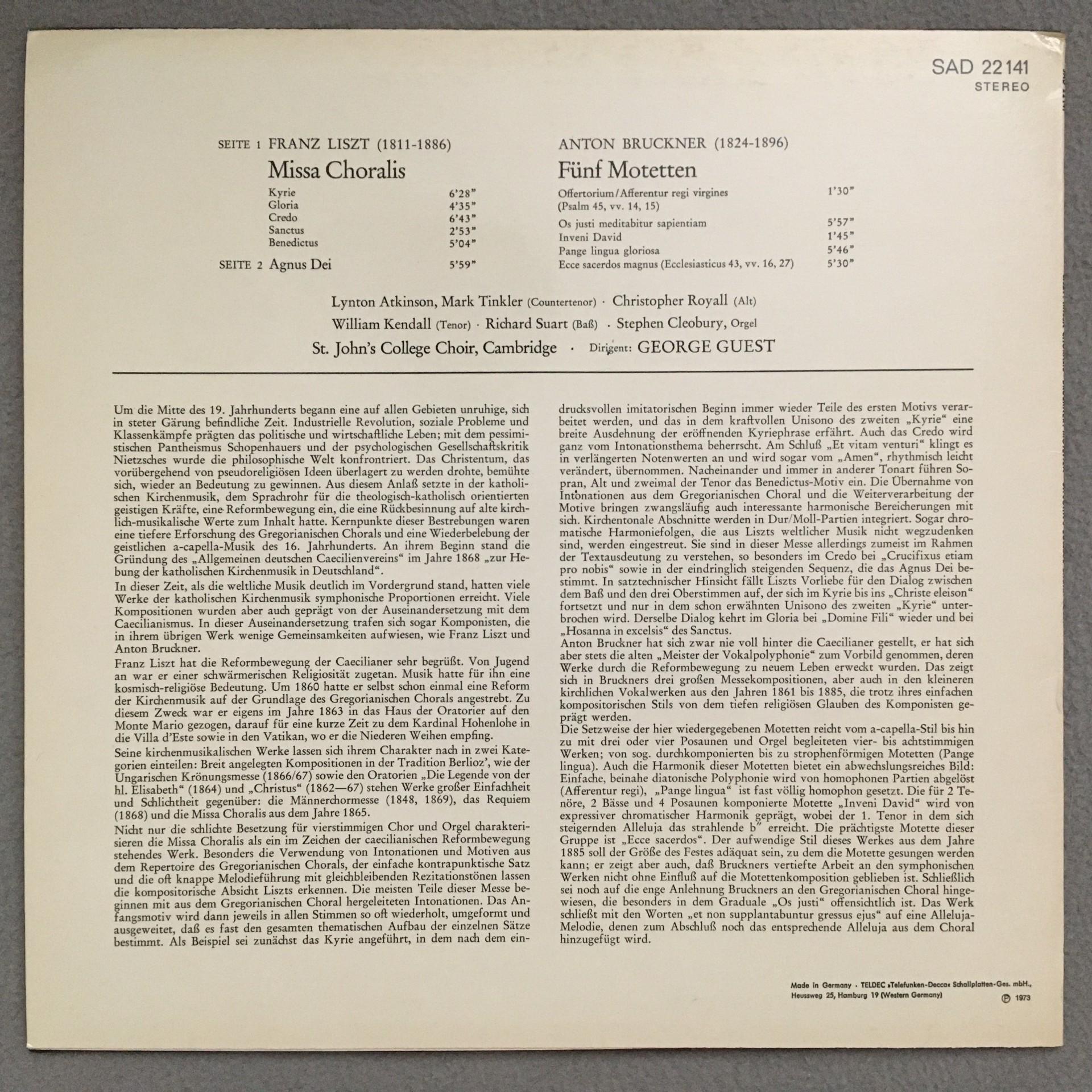 P892 Liszt Missa Choralis Bruckner Motets Guest DECCA SAD 22 141 Stereo