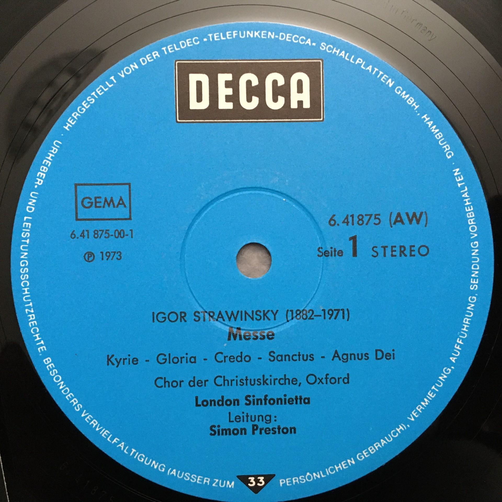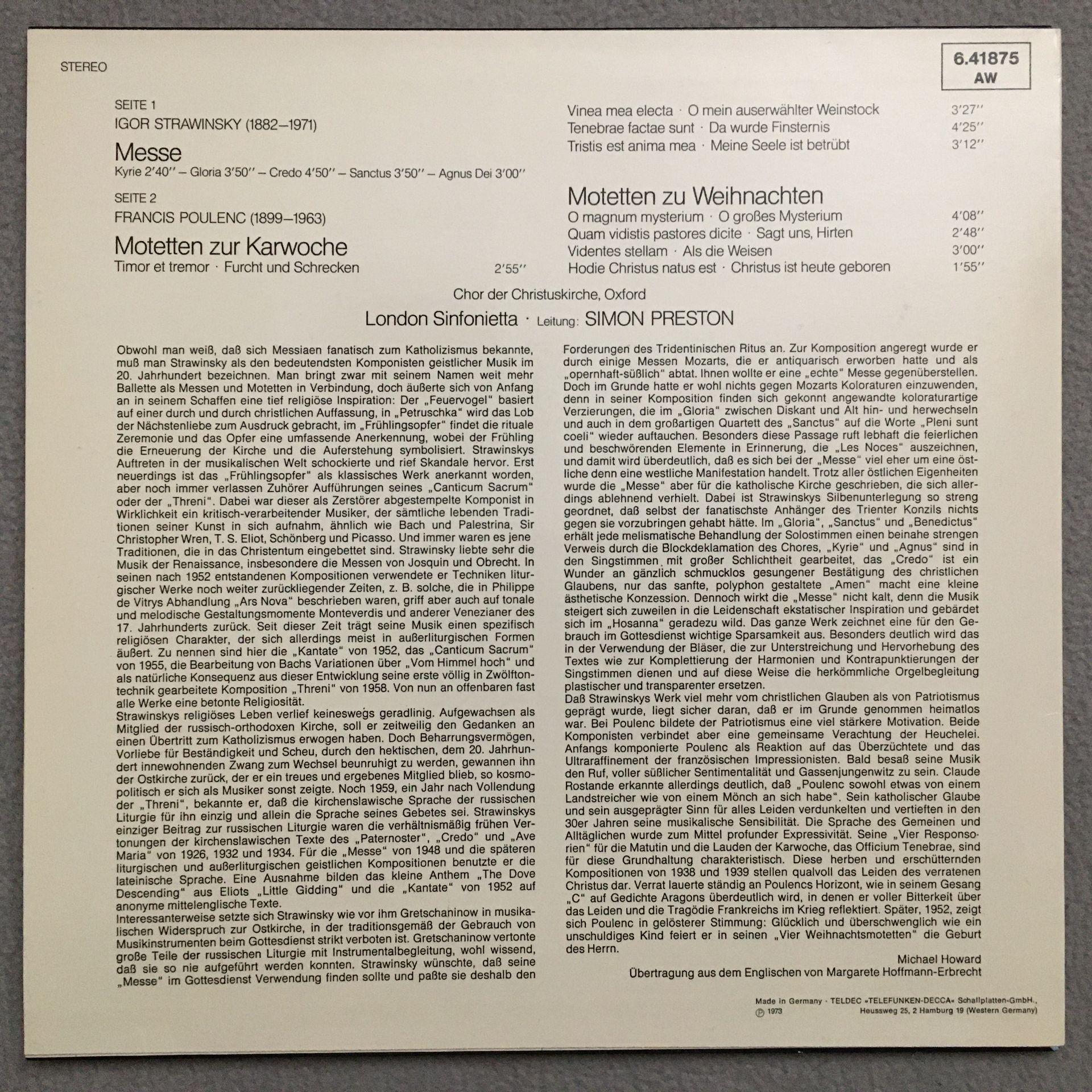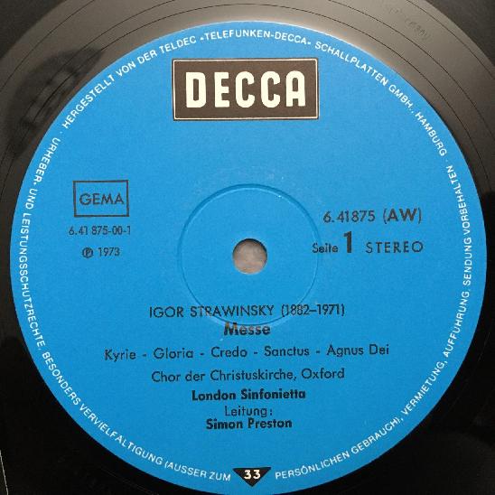 P904 Stravinsky Mass Poulenc Motets Preston DECCA 6.41875 AW Stereo