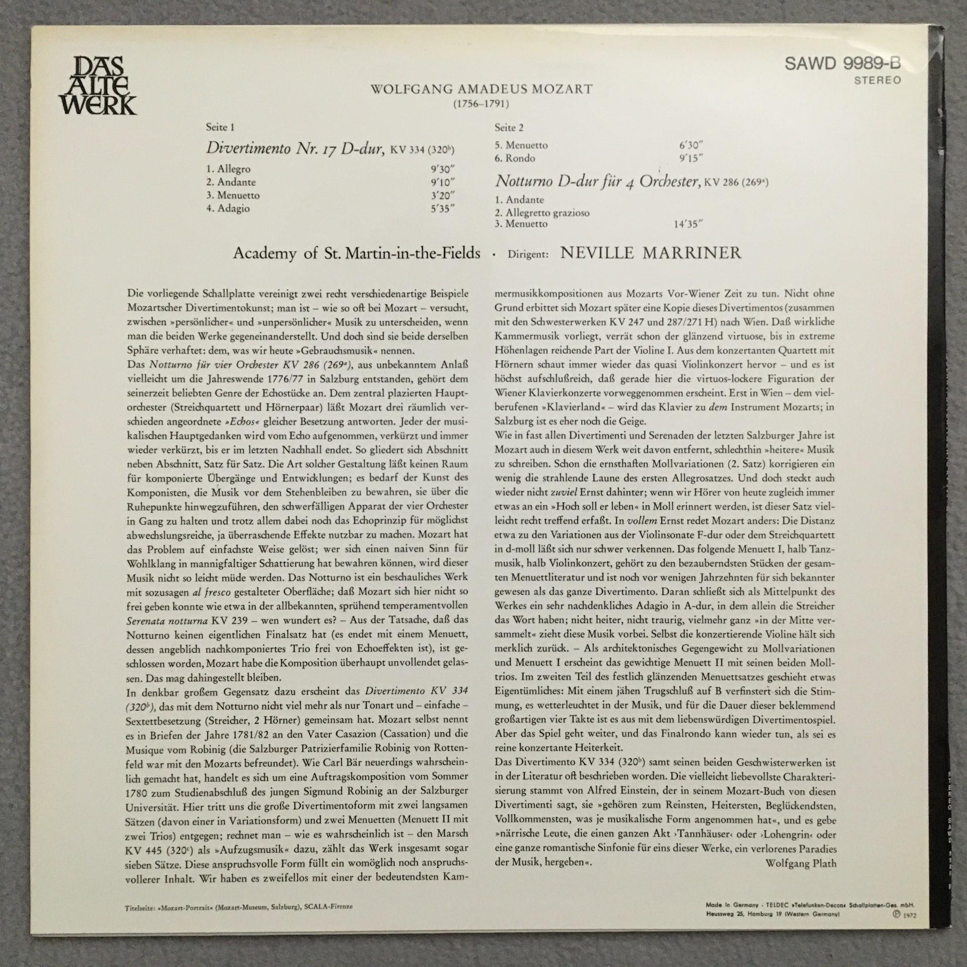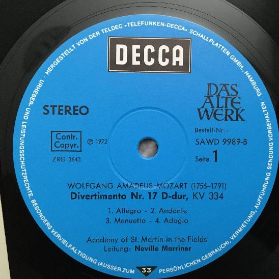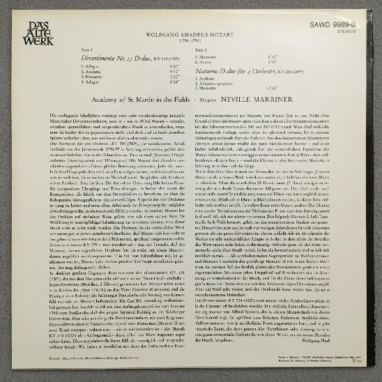 P909 Mozart Divertimento Notturn Marriner DECCA SAWD 9989-B Stereo