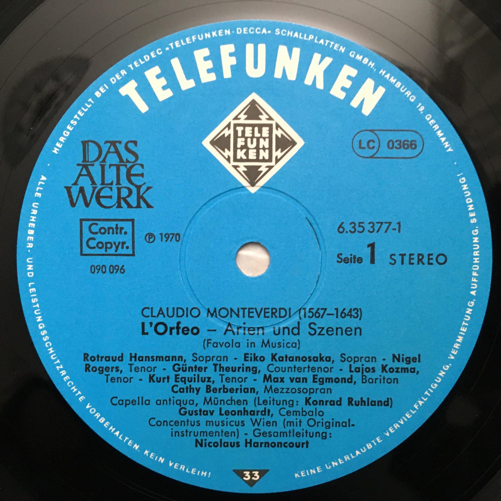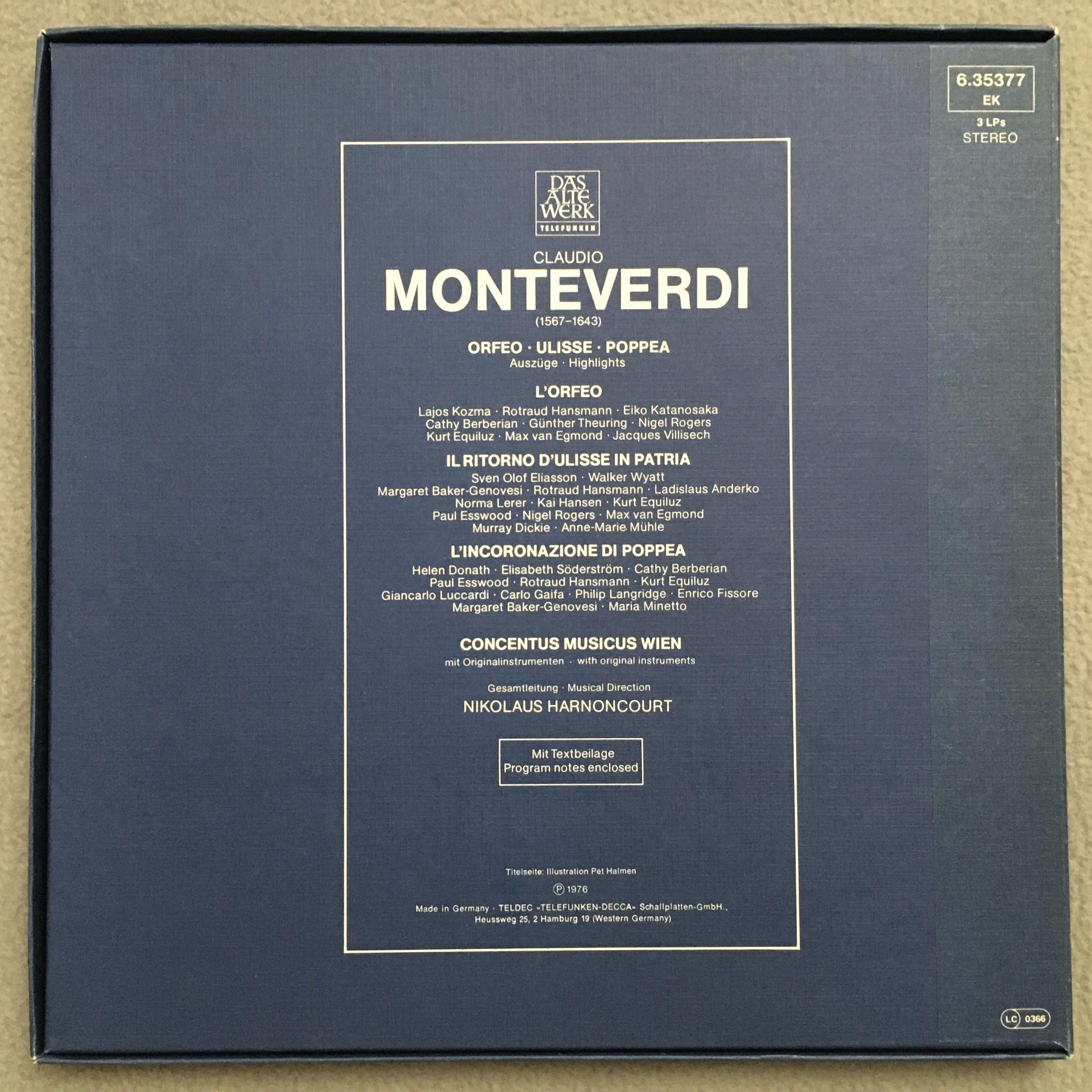 D934 Monteverdi L´Orfeo Ulisse Harnoncourt 3LP Telefunken 6.35377 EK Stereo