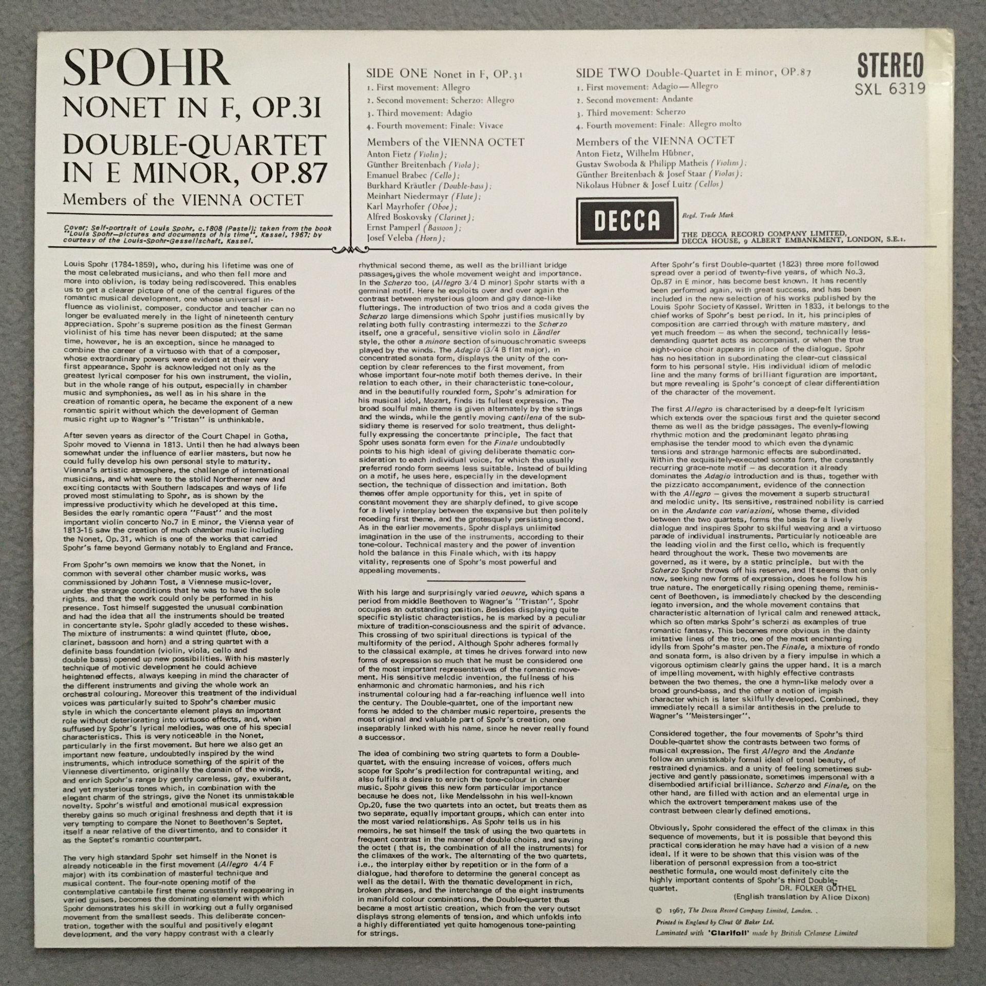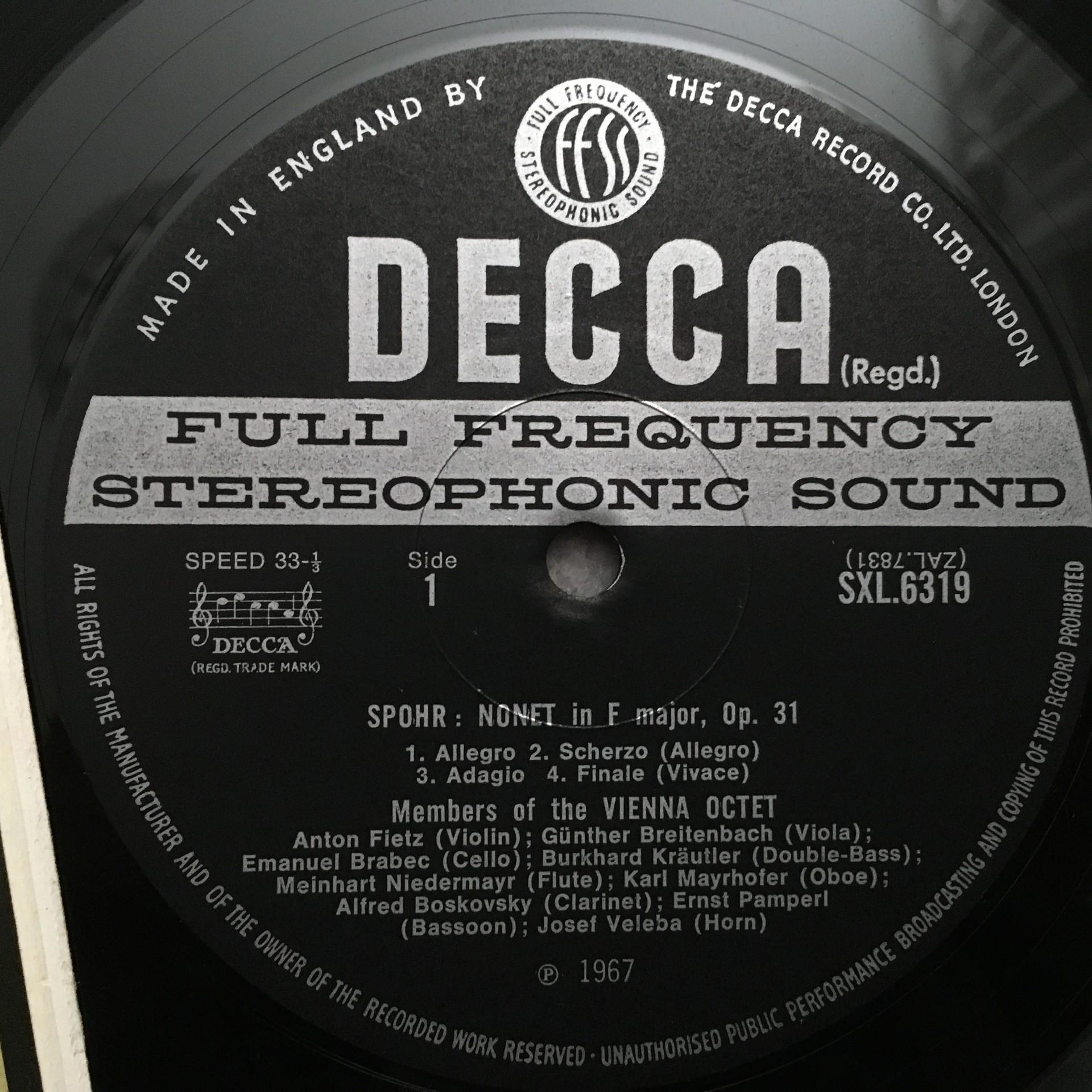 P915 Spohr Nonet Op.87 Members of Vienna Octet DECCA SXL 6319 Stereo WB