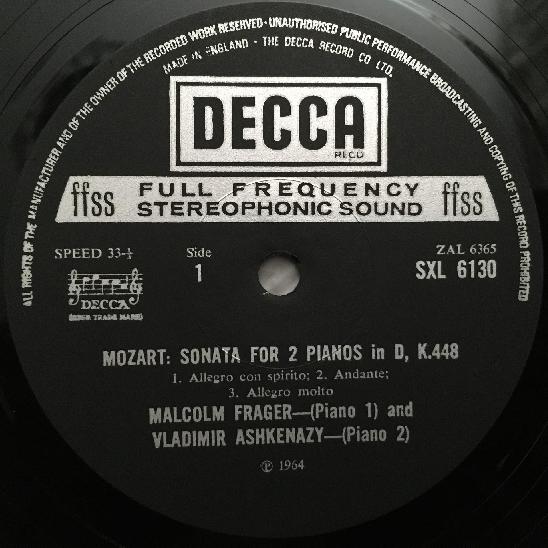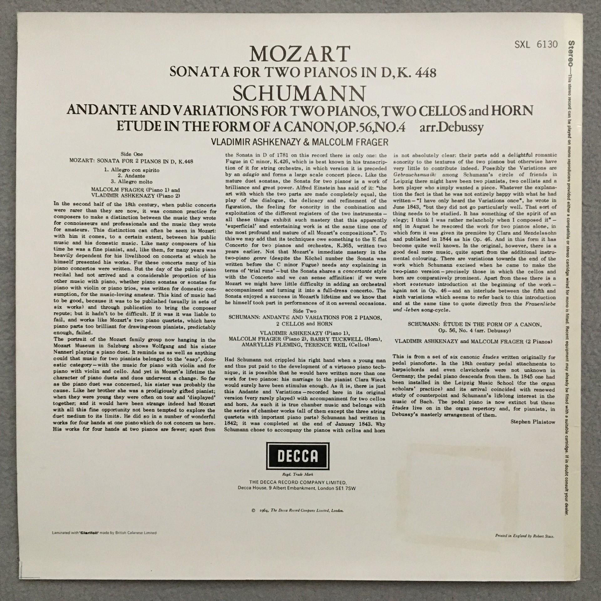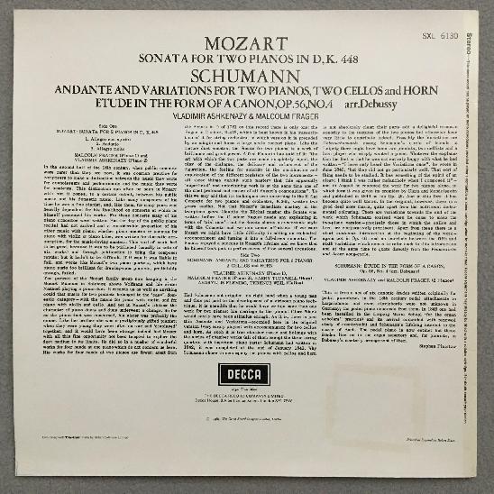 P921 Mozart Sonata Schumann Andante Ashkenazy Frager DECCA SXL 6130 Stereo