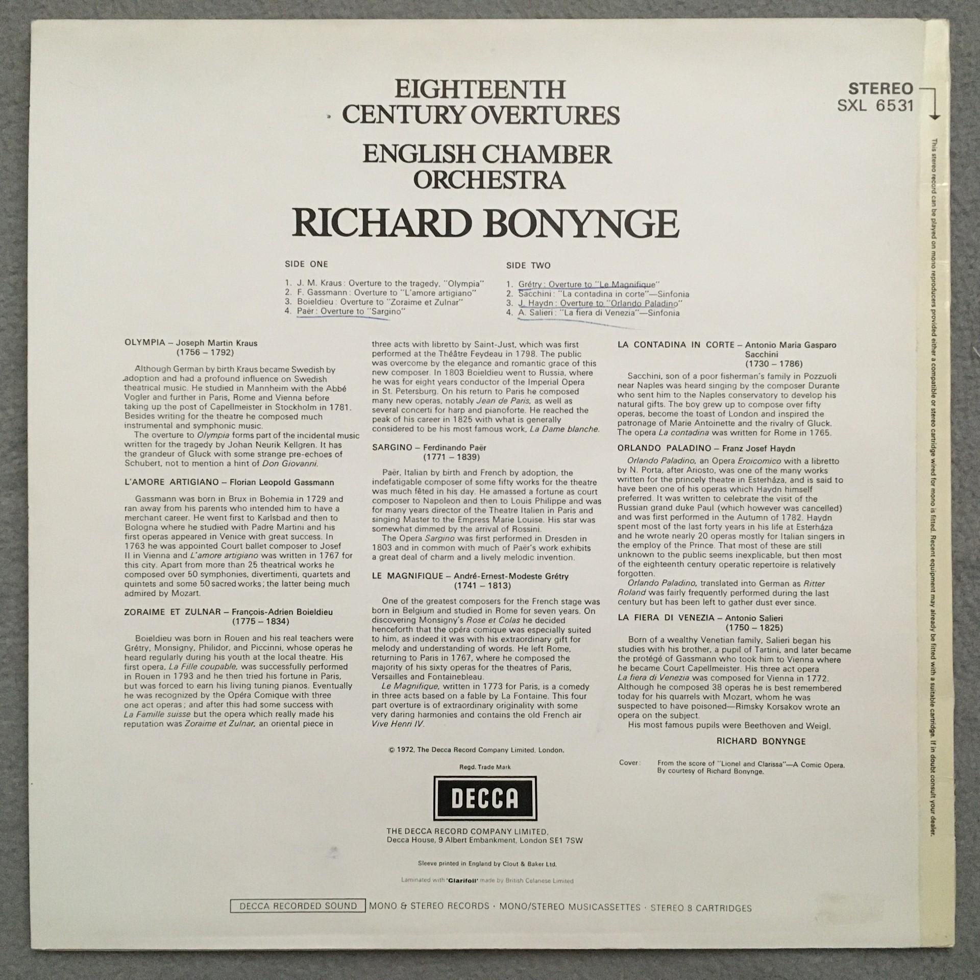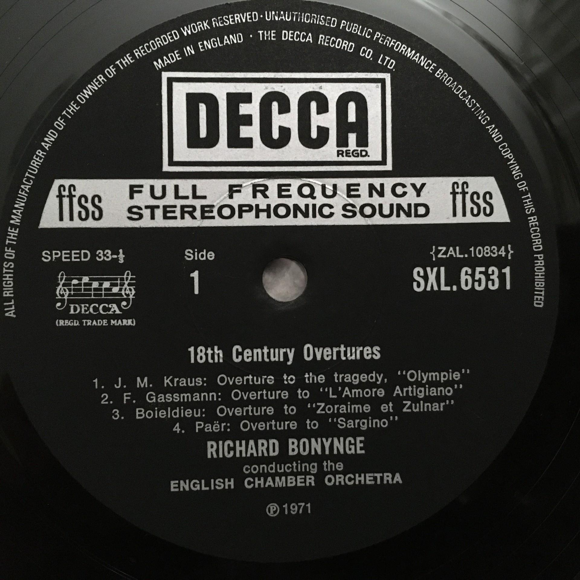 P924 Overtures fom 18th Century Bonynge DECCA SXL 6531 Stereo