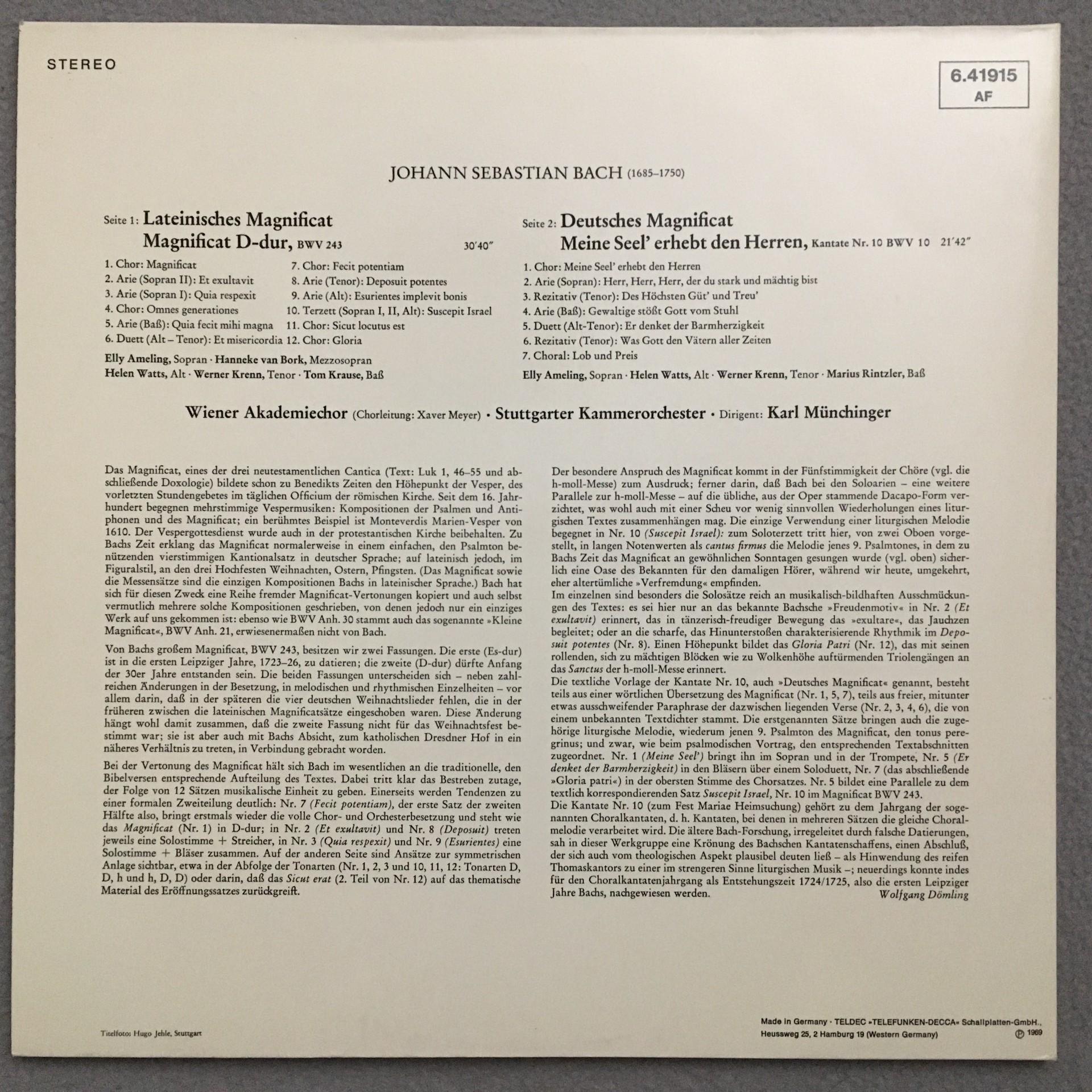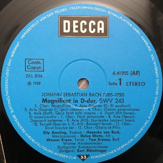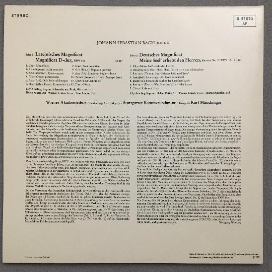 P936 Bach Latin & German Magnificat Munchinger DECCA 6.41915 AF Stereo
