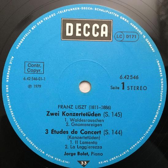 P946 Liszt Etudes Reminiscences Don Juan Bolet Piano DECCA 6.42546 AS Stereo