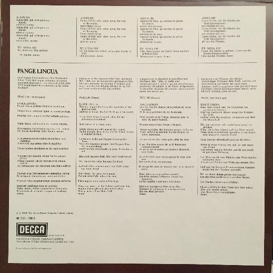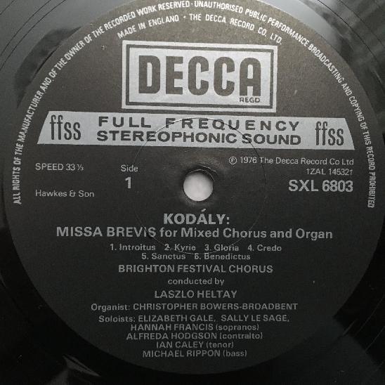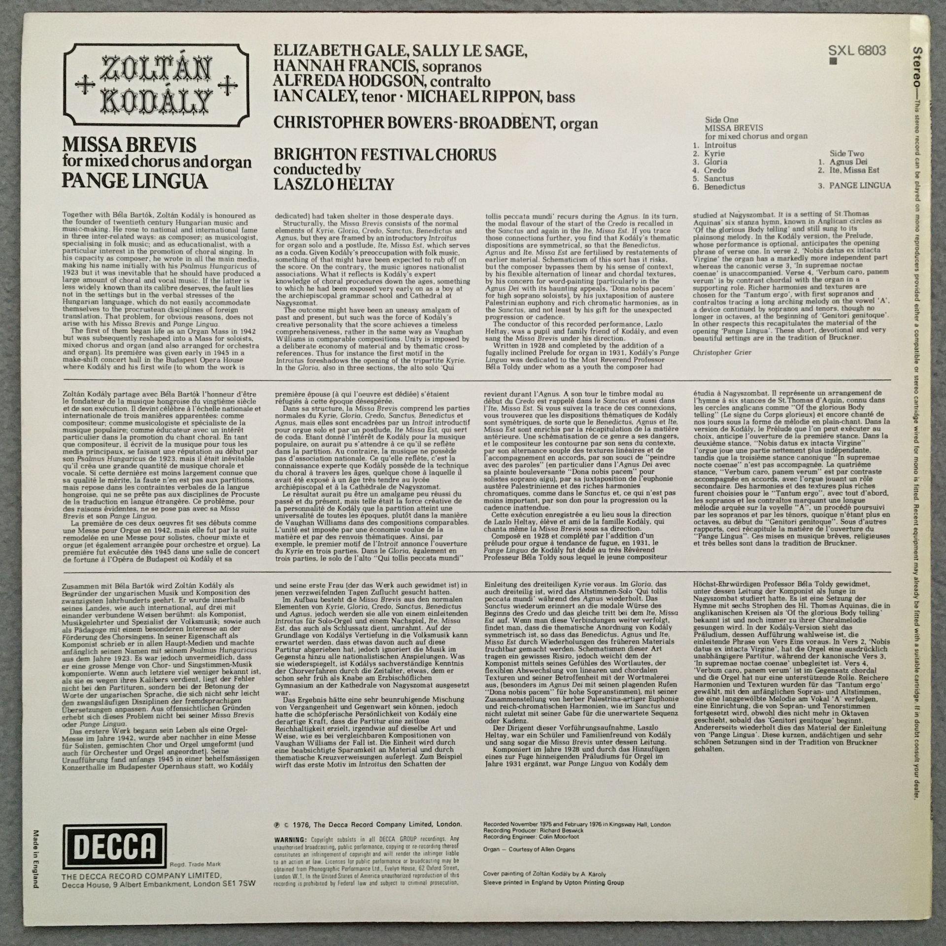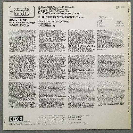 P947 Kodaly Missa Brevis Pange Lingua Heltay DECCA SXL 6803 Stereo