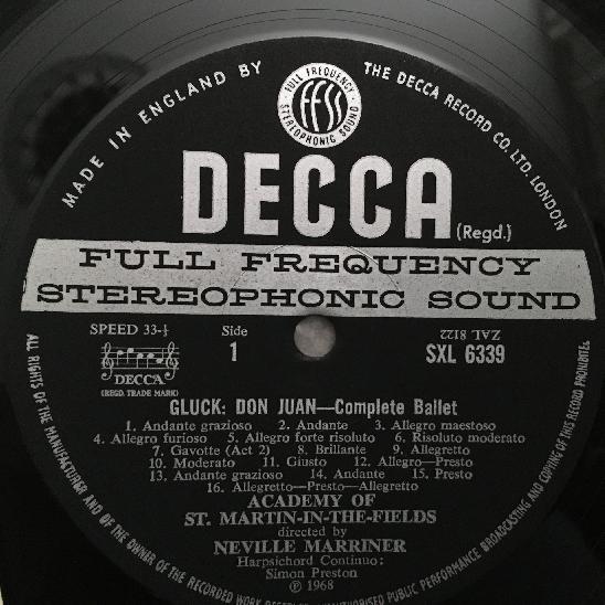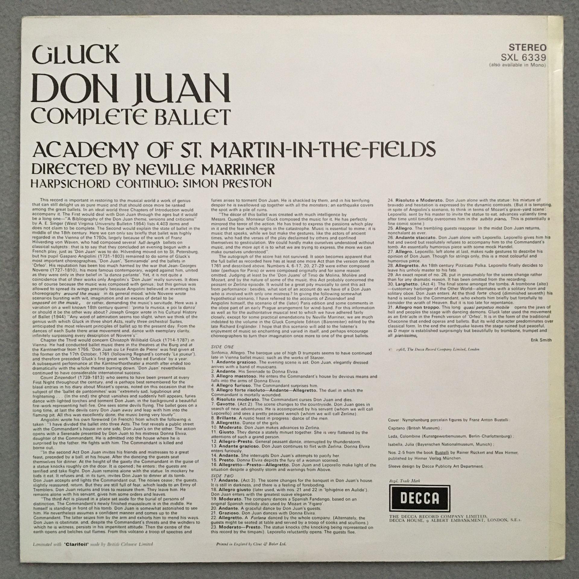 P948 Gluck Don Juan Complete Ballet Preston Marriner DECCA SXL 6339 Stereo