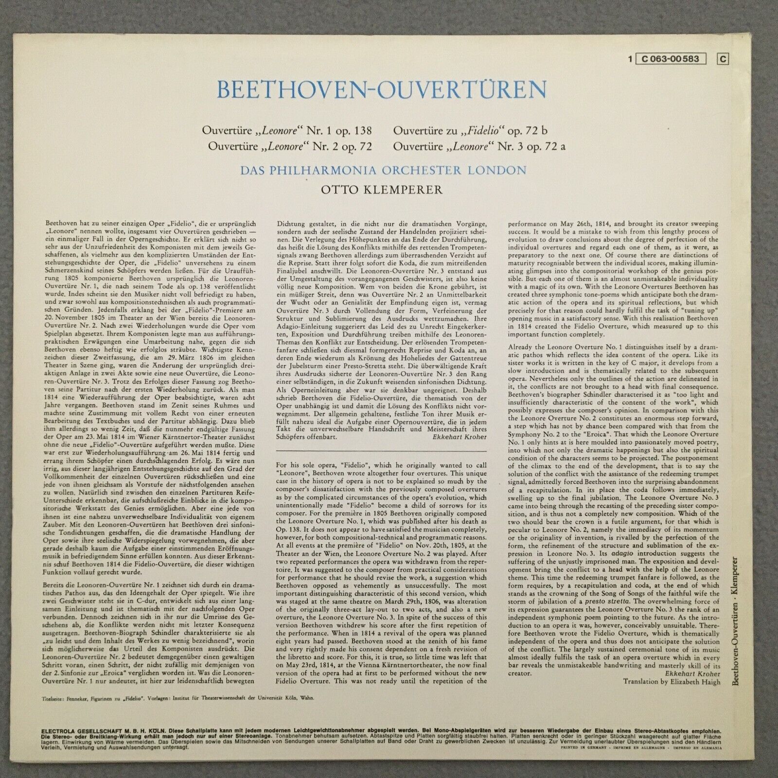 S478 Beethoven Overtures Klemperer LPO EMI 1 C 063-00 583 Stereo