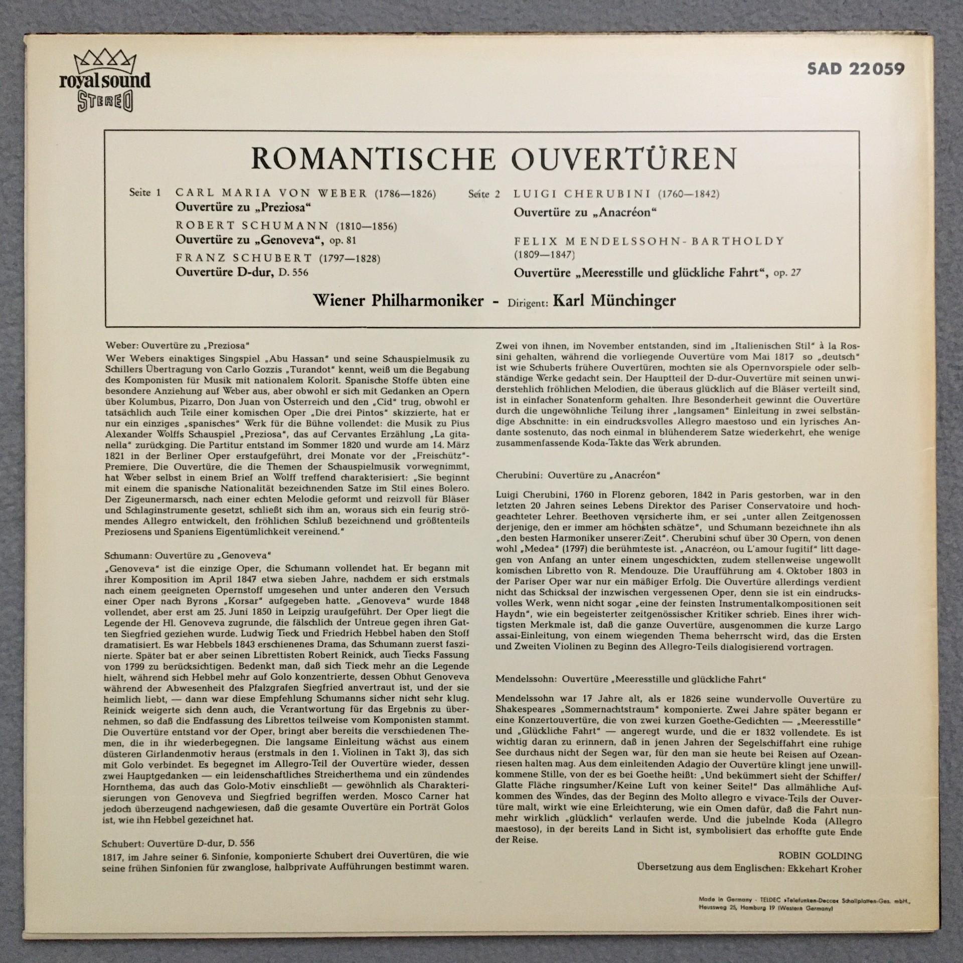 P956 Romantic Overtures Munchinger VPO DECCA SAD 22 059 Stereo