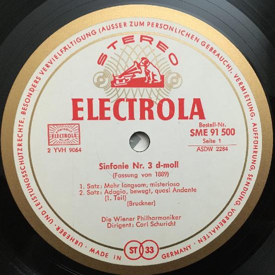 P957 Bruckner Symphony No.3 Schuricht VPO Electrola w/g SME 91 500 Stereo