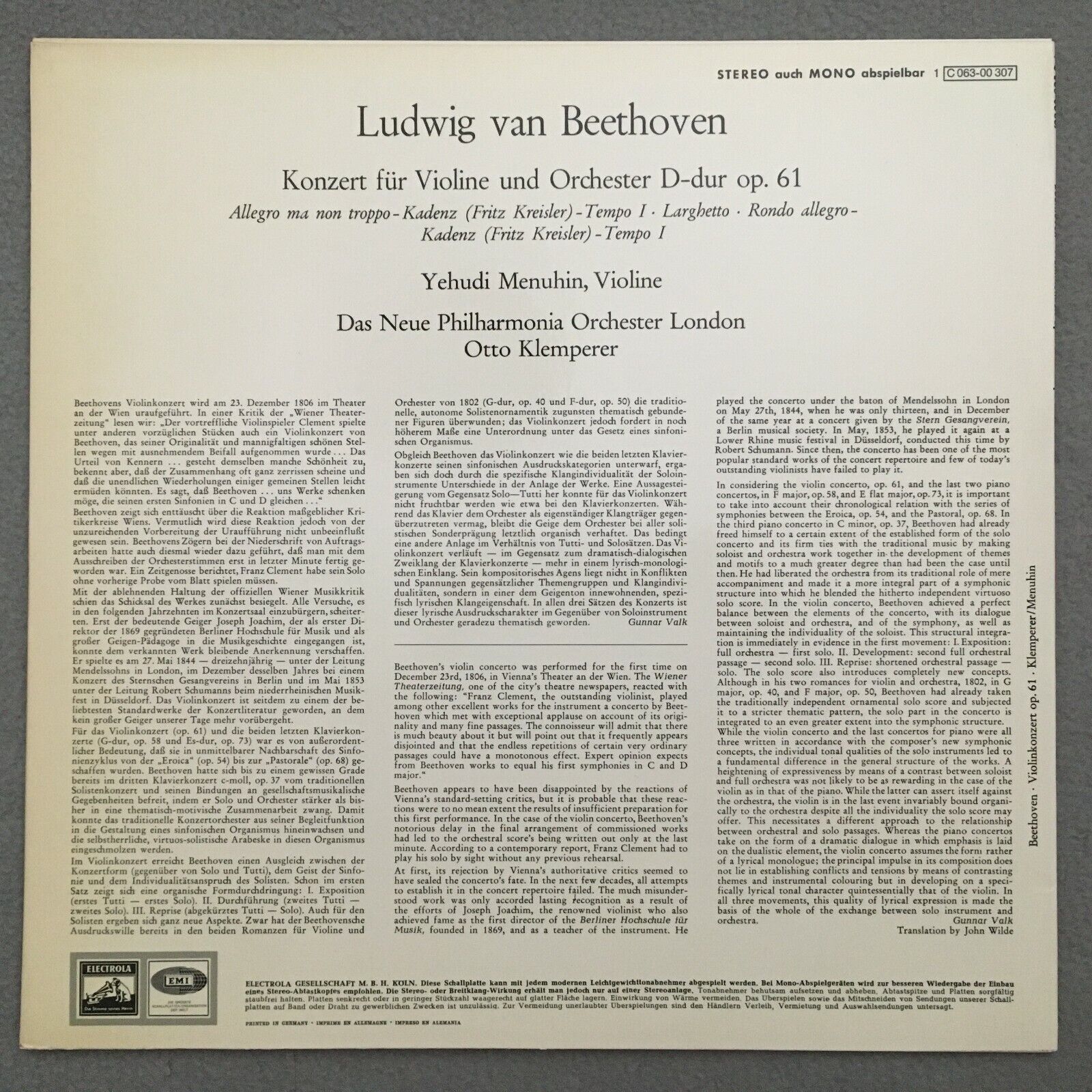S477 Beethoven Violin Concerto Menuhin Klemperer LPO EMI 1 C 063-00 307 Stereo