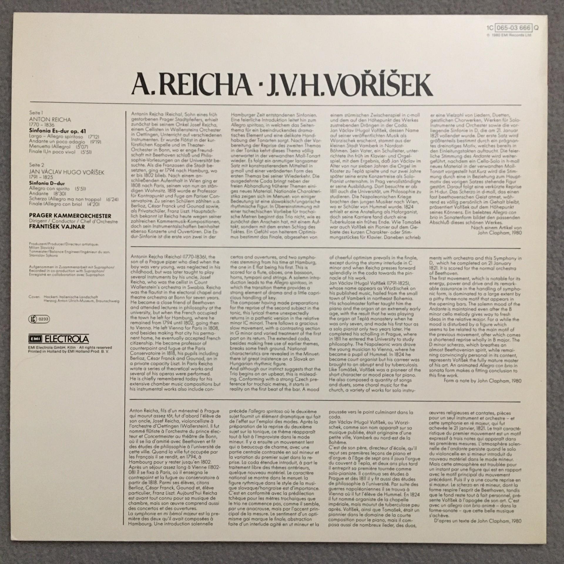 P967 Reicha Vorisek Symphonies Vajnar EMI 1C 065-03 666 Q Quadro