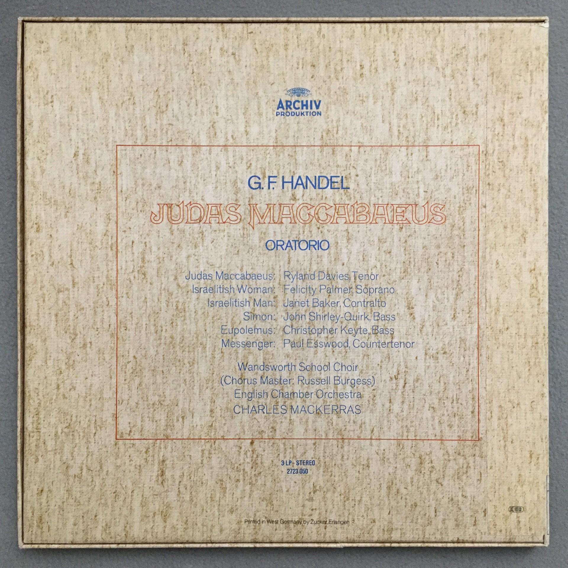 G778 Handel Judas Maccabaeus Baker Mackerras 3LP DGG Archiv 2723 050 Stereo