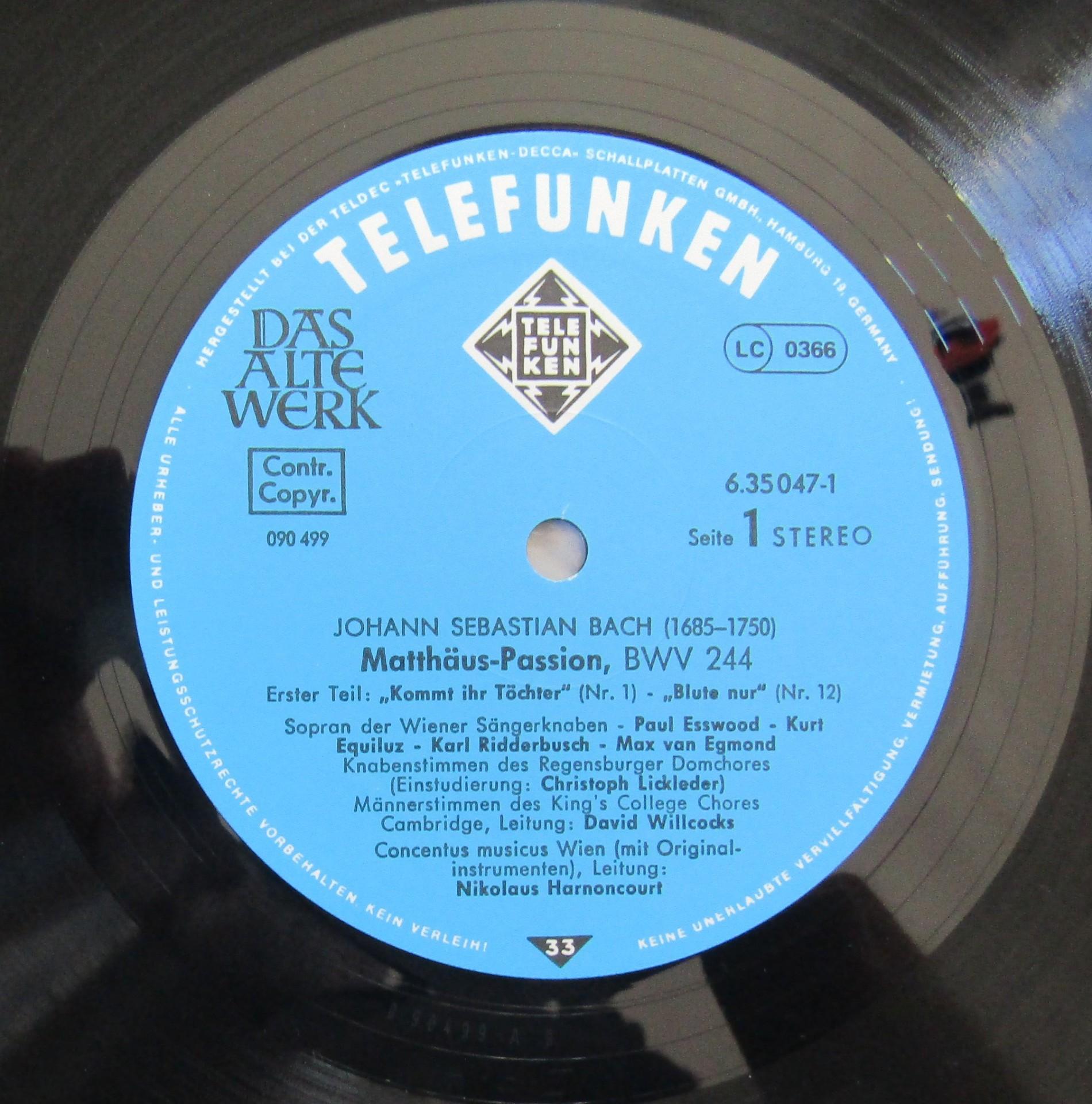 G779 Bach St. Matthew Passion Harnoncourt 4LP Telefunken 6.35047 FK Digital St