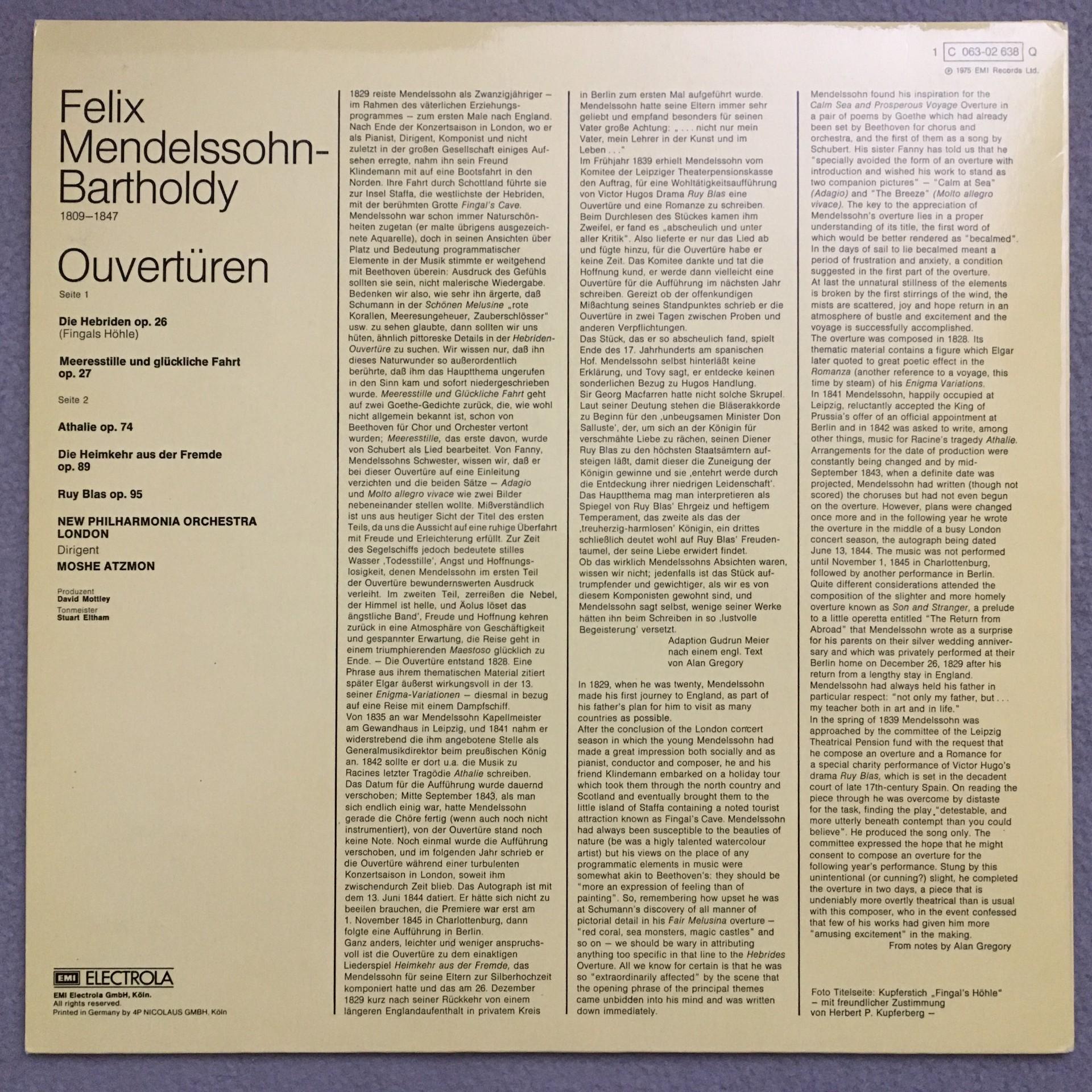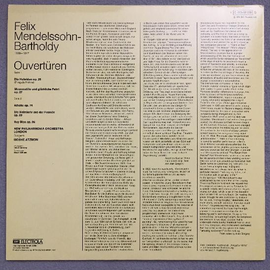 P974 Mendelssohn Overtures Atzmon EMI 1 C 063-02 638 Q Quadro