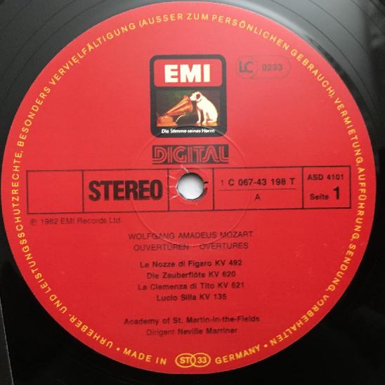 P978 Mozart Overtures Marriner EMI 1C 067-43 198 T Digital Stereo