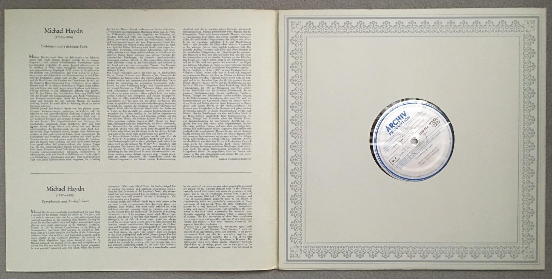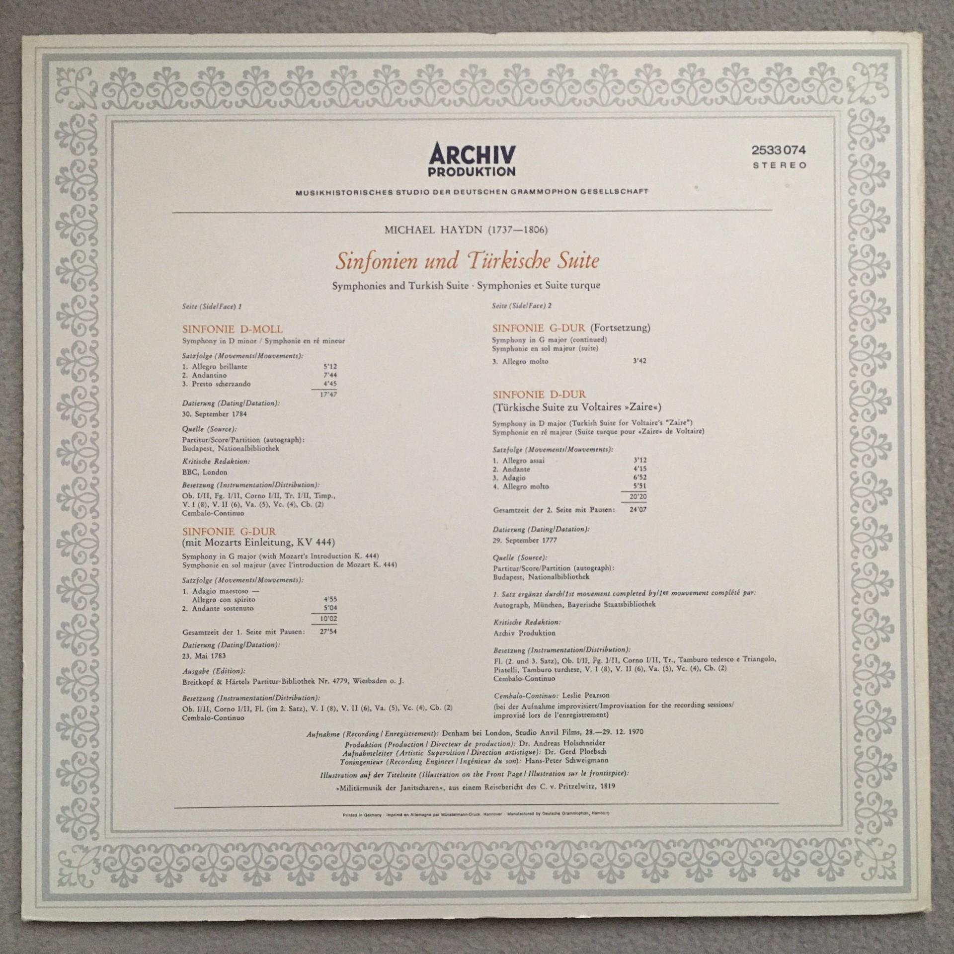 P990 Haydn Symphonies Turkish Suite Mackerras DGG Archiv 2533 074 Stereo