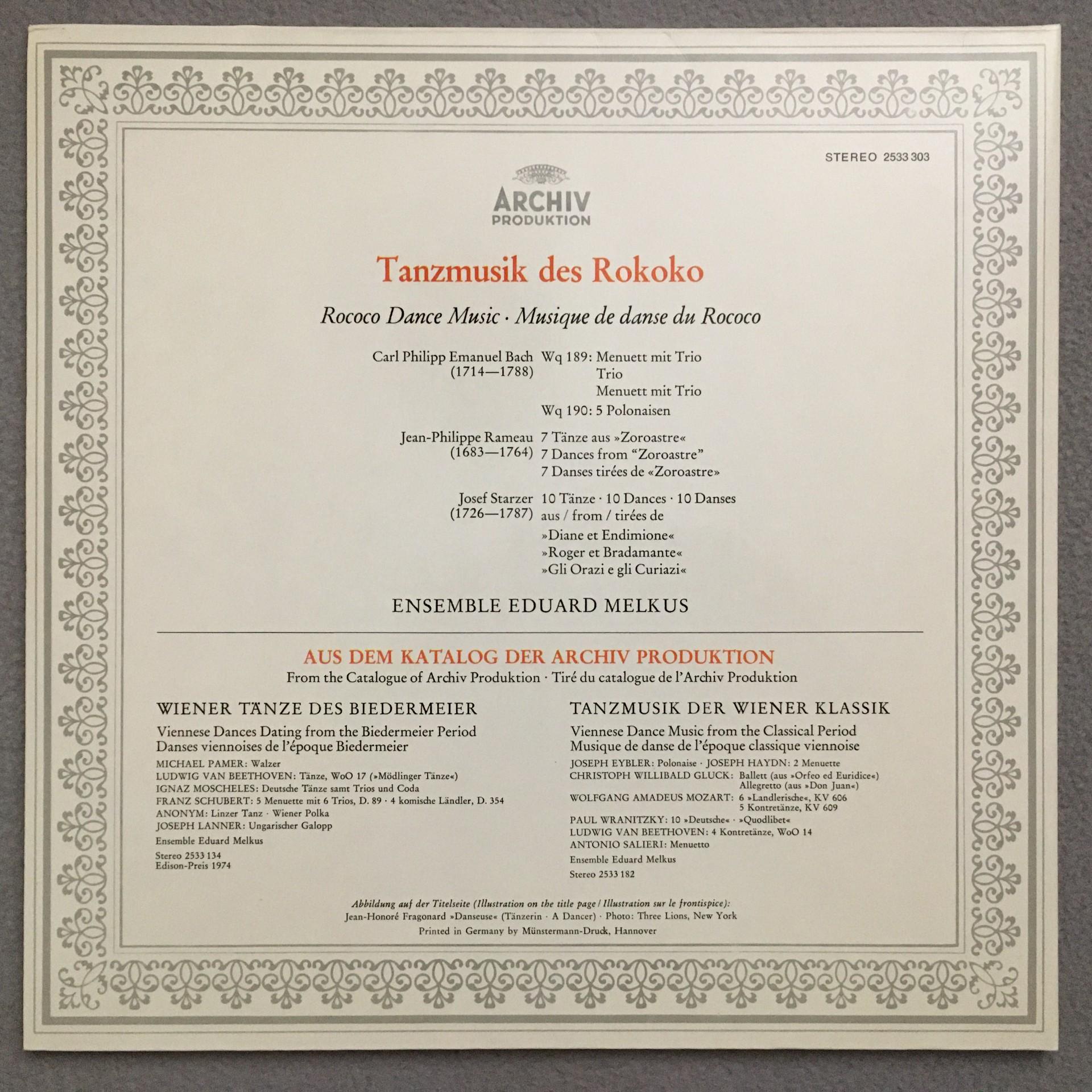 P996 Rococo Dance Music Melkus Ensemble DGG Archiv 2533 303 Stereo
