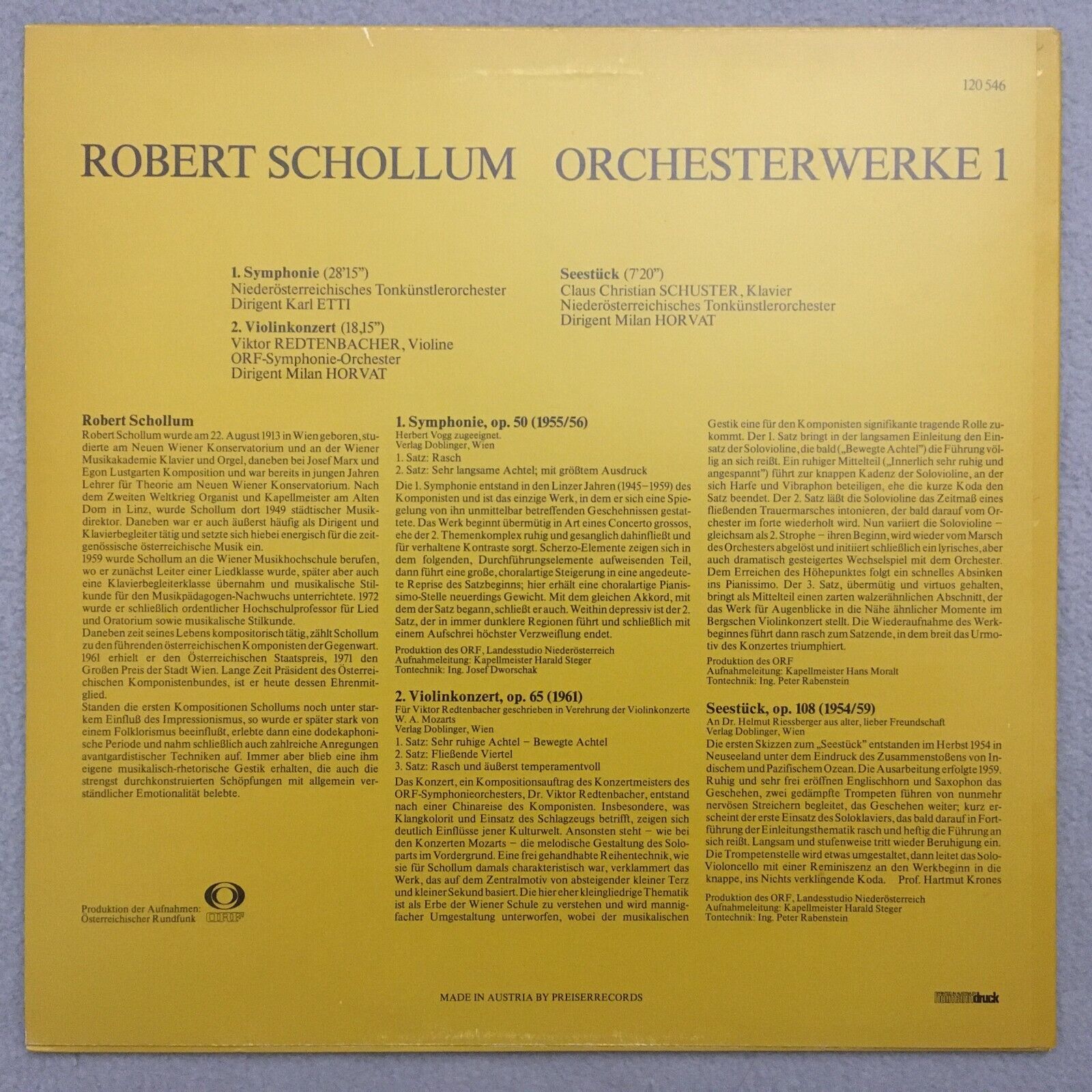 S467 Schollum Orchestra Works 1 Etti Horvat Preiser Records 120 546 Stereo