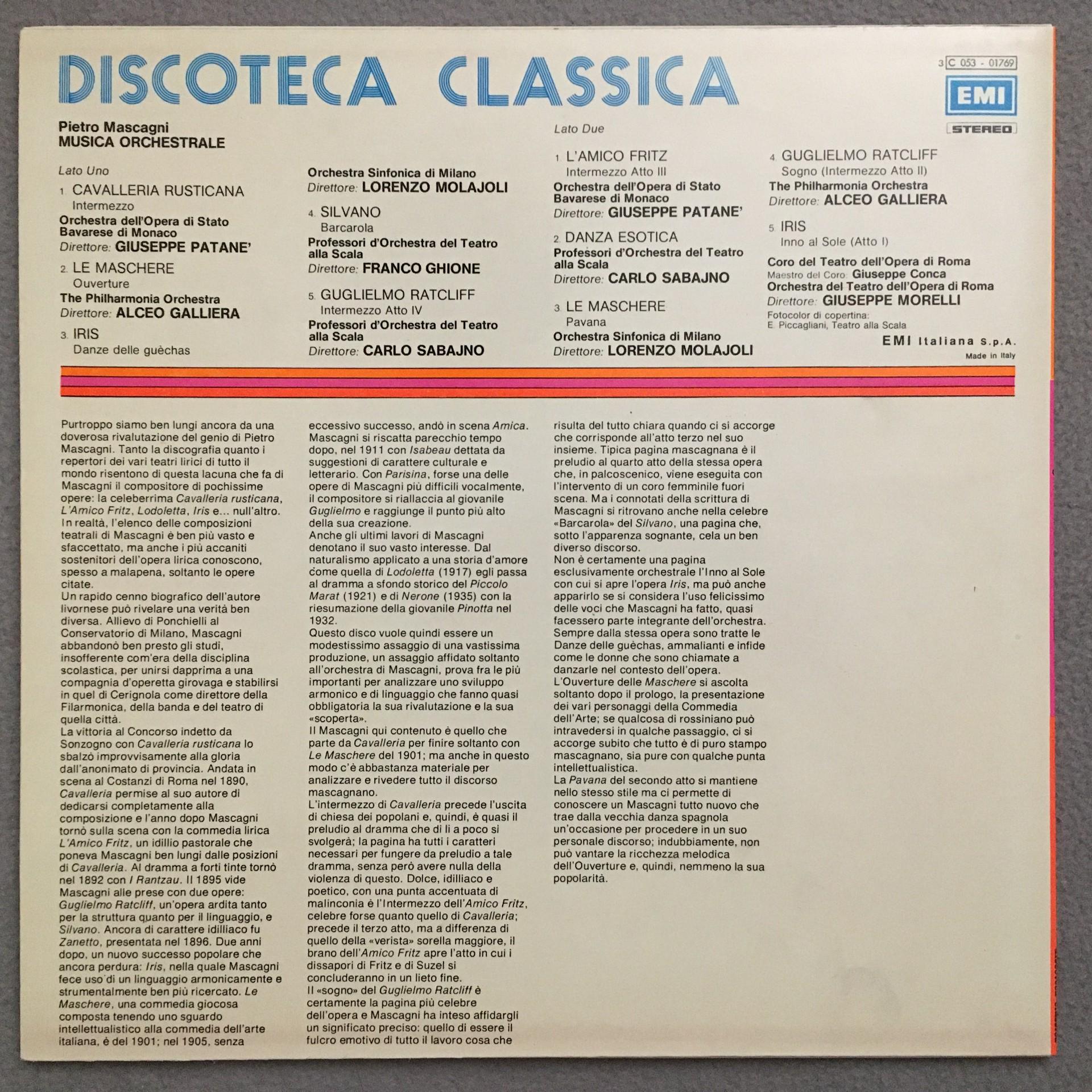 Q007 Mascagni Musica Orchestrale Patane Galliera EMI 3 C 053-01 769 Stereo